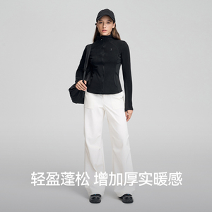 MissWiss直筒裤子女秋冬宽松加绒保暖长裤阔腿垂感黑色瑜伽休闲裤