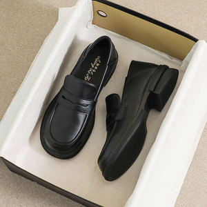 真皮通勤乐福鞋女百搭一脚蹬单鞋
