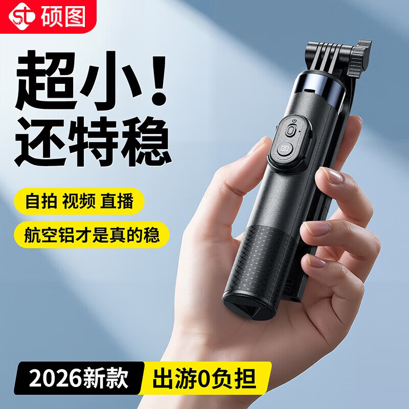 硕图自拍杆三脚架旅行小巧便携式旅游手机支架落地手持迷你防抖伸缩自拍神器360度旋转多功能直播拍摄