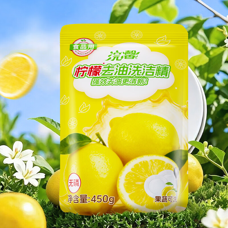 浣馨洗洁精柠檬草莓香快速去油清新祛味去重油污餐具家用洗涤剂 450g*1袋【柠檬清香】