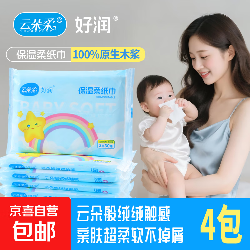 【大牌同源】云朵柔乳霜纸保湿抽纸100%原生木浆云柔巾 3层30抽 云朵柔 3层 30抽*4包