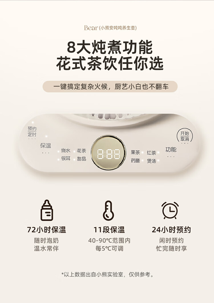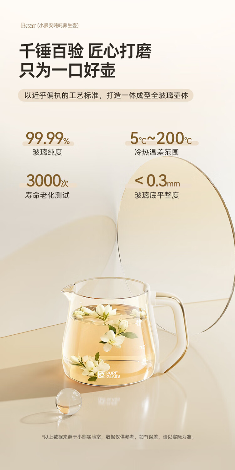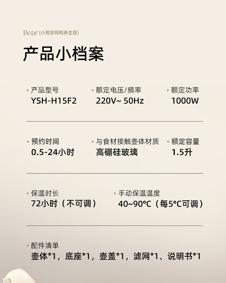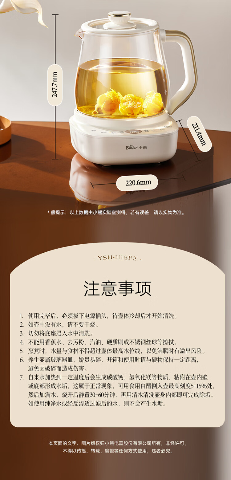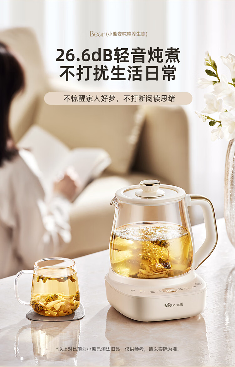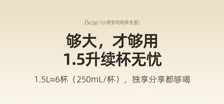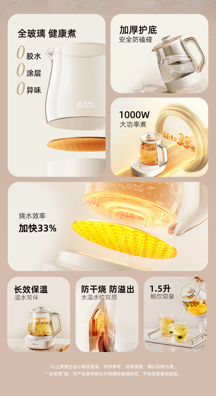 小熊(Bear)全玻璃养生壶 安吨吨恒温壶 办公室多功能煮茶壶 0胶水0金属 72h保温 1.5L YSH-H15F2