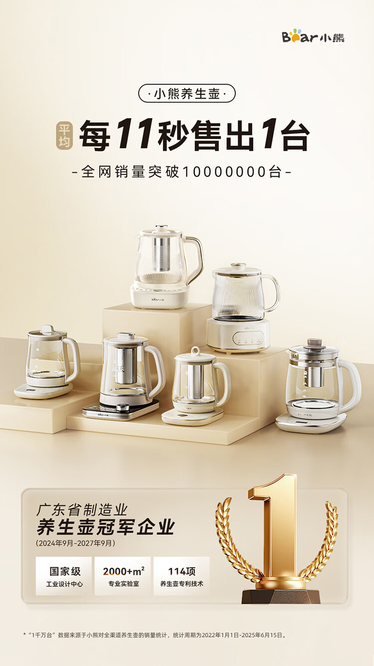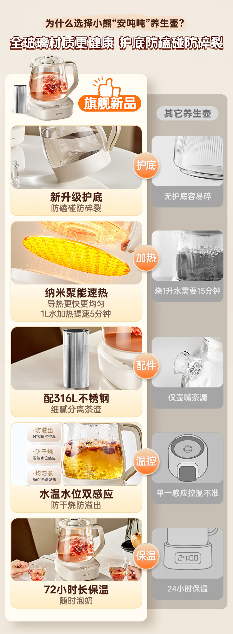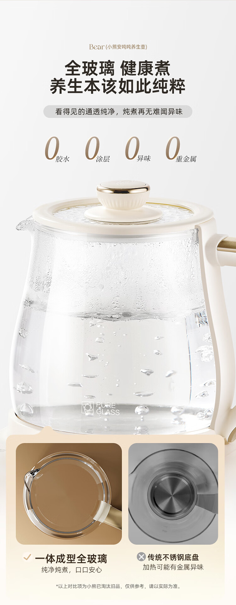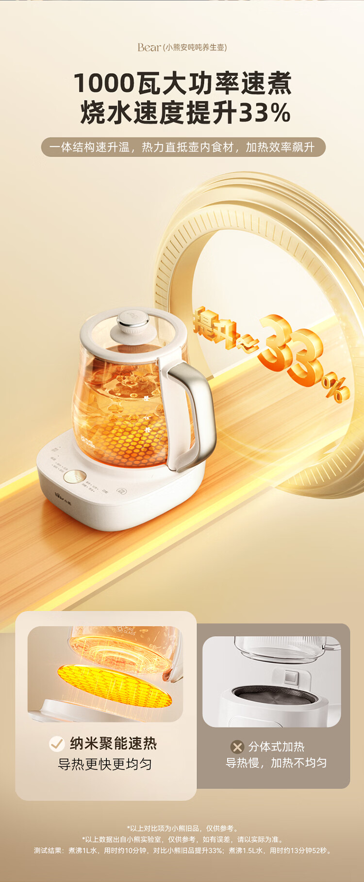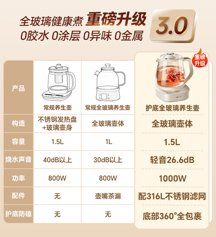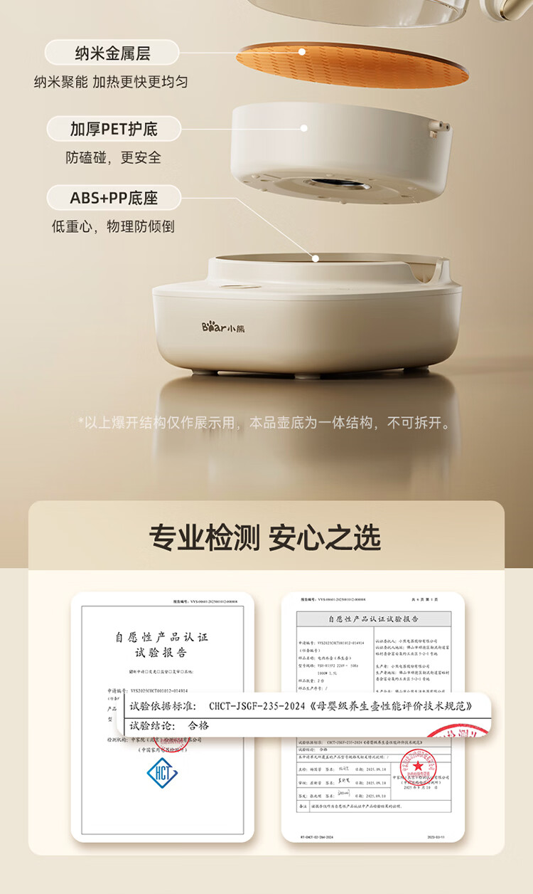 小熊(Bear)全玻璃养生壶 安吨吨恒温壶 办公室多功能煮茶壶 0胶水0金属 72h保温 1.5L YSH-H15F2