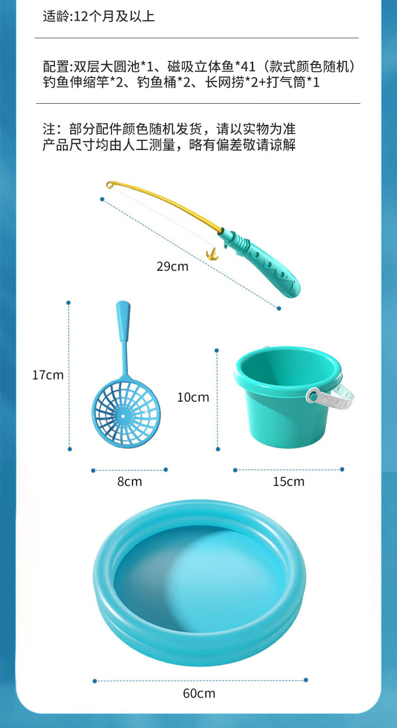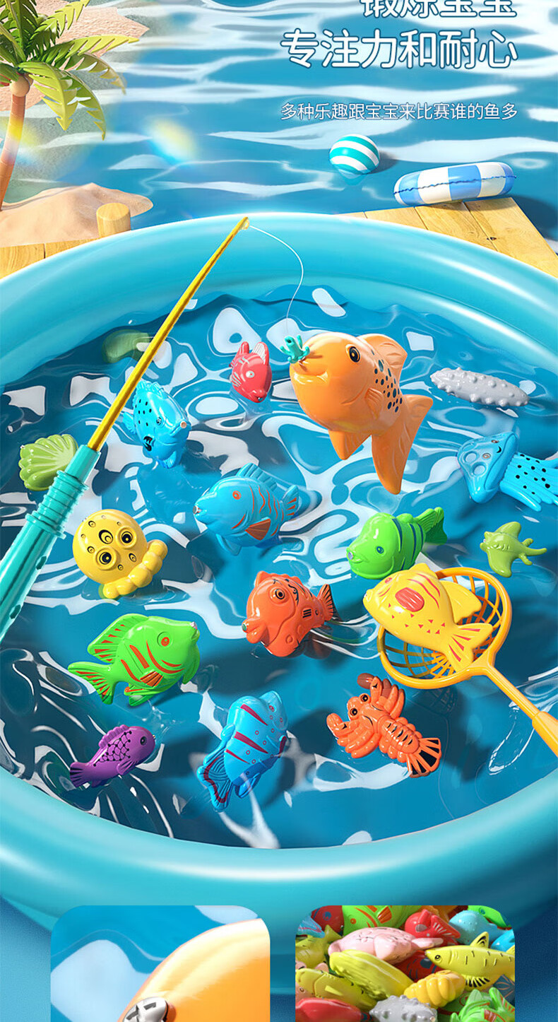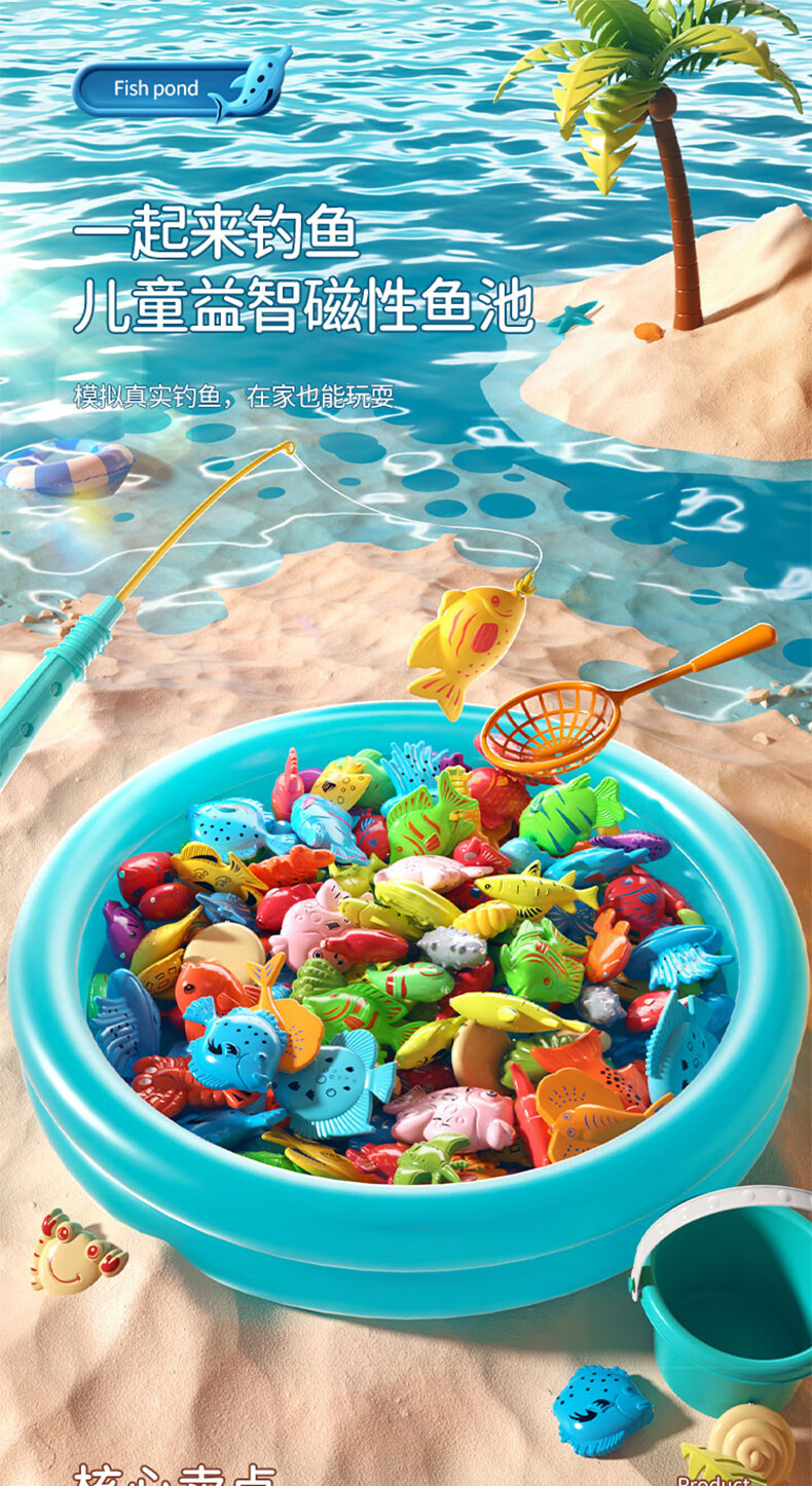 恩贝家族儿童磁性钓鱼玩具水池装备3-6岁宝宝捞鱼网兜充气床生日新年礼物