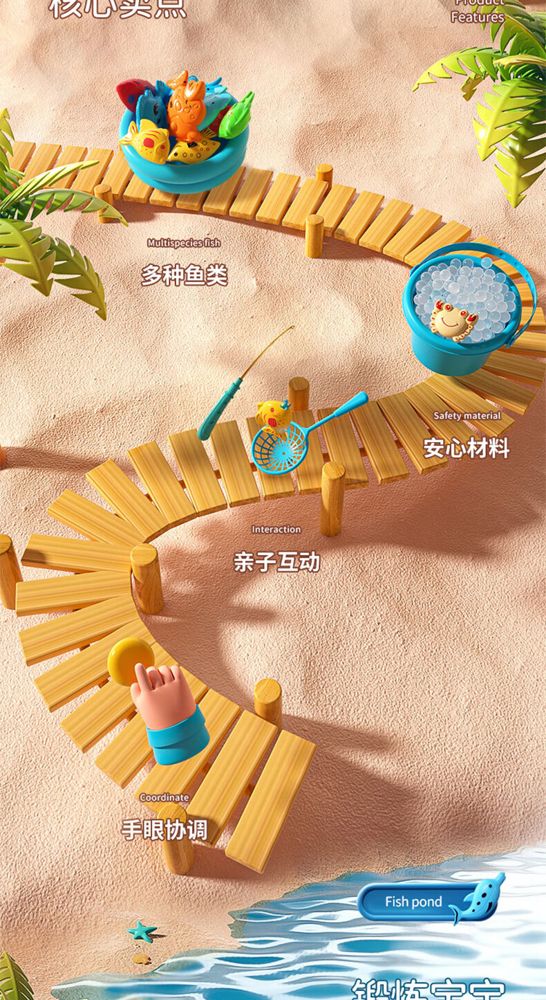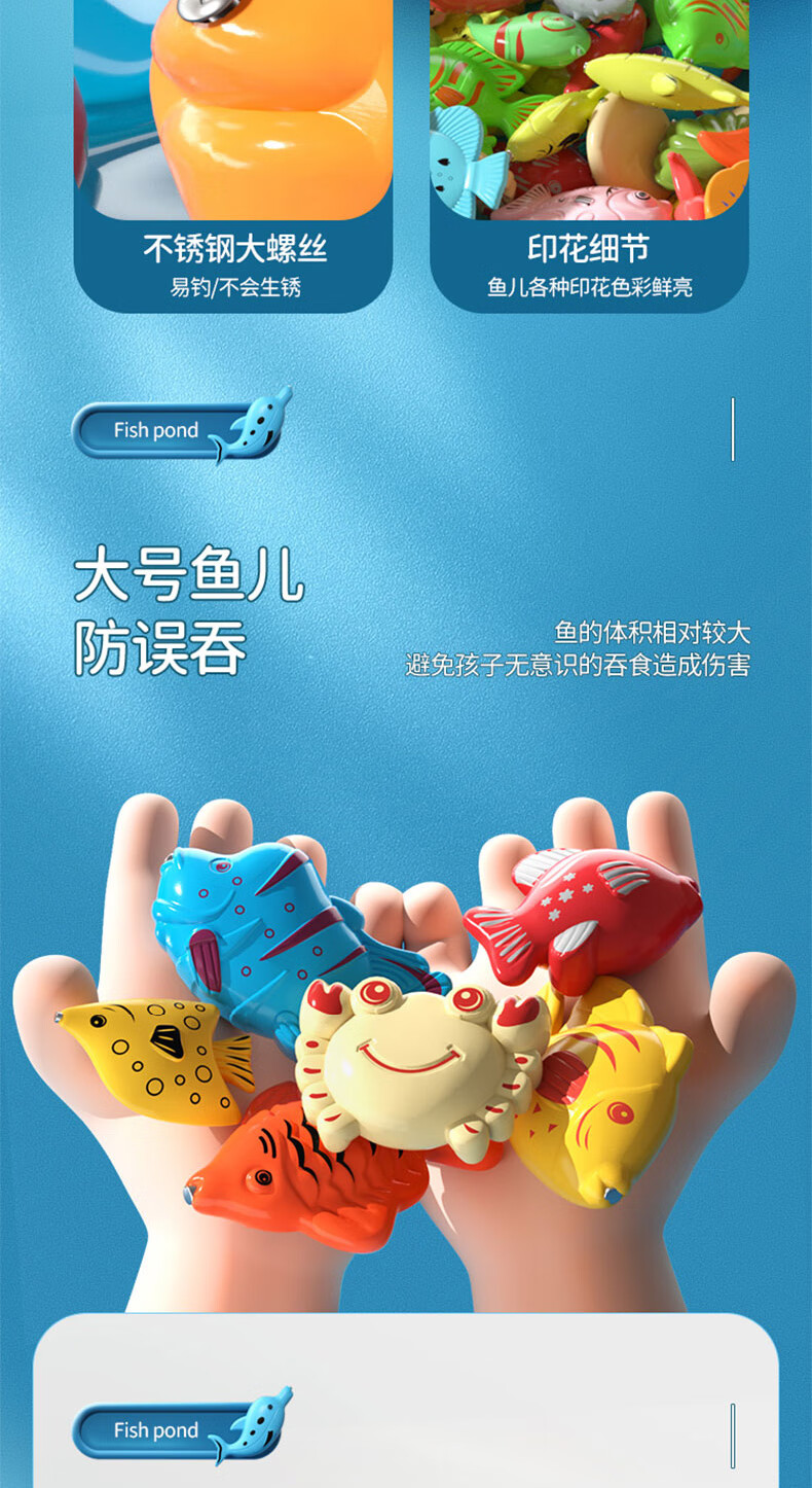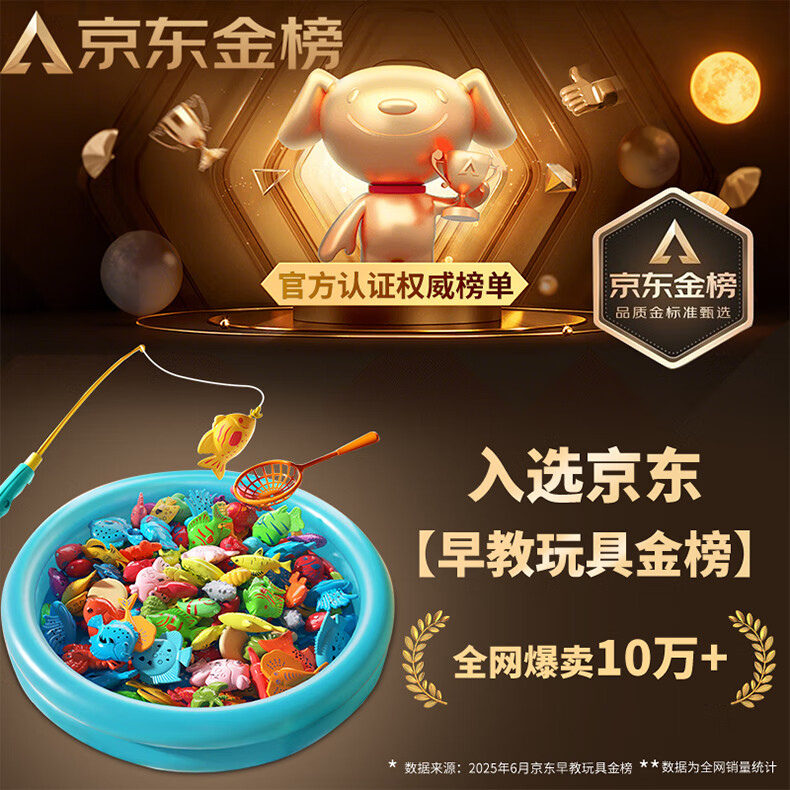 恩贝家族儿童磁性钓鱼玩具水池装备3-6岁宝宝捞鱼网兜充气床生日新年礼物