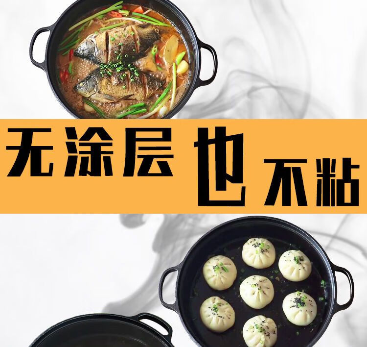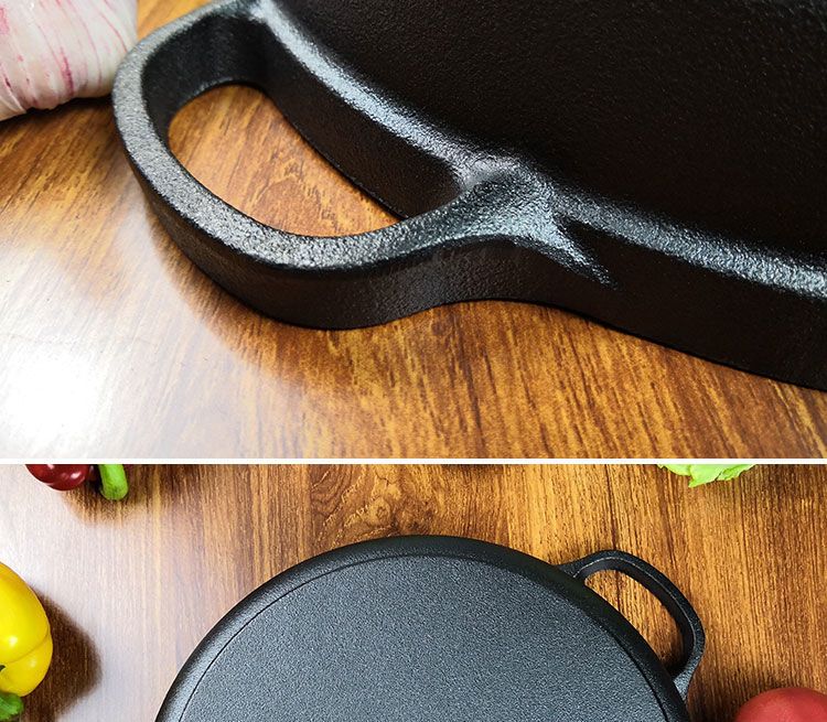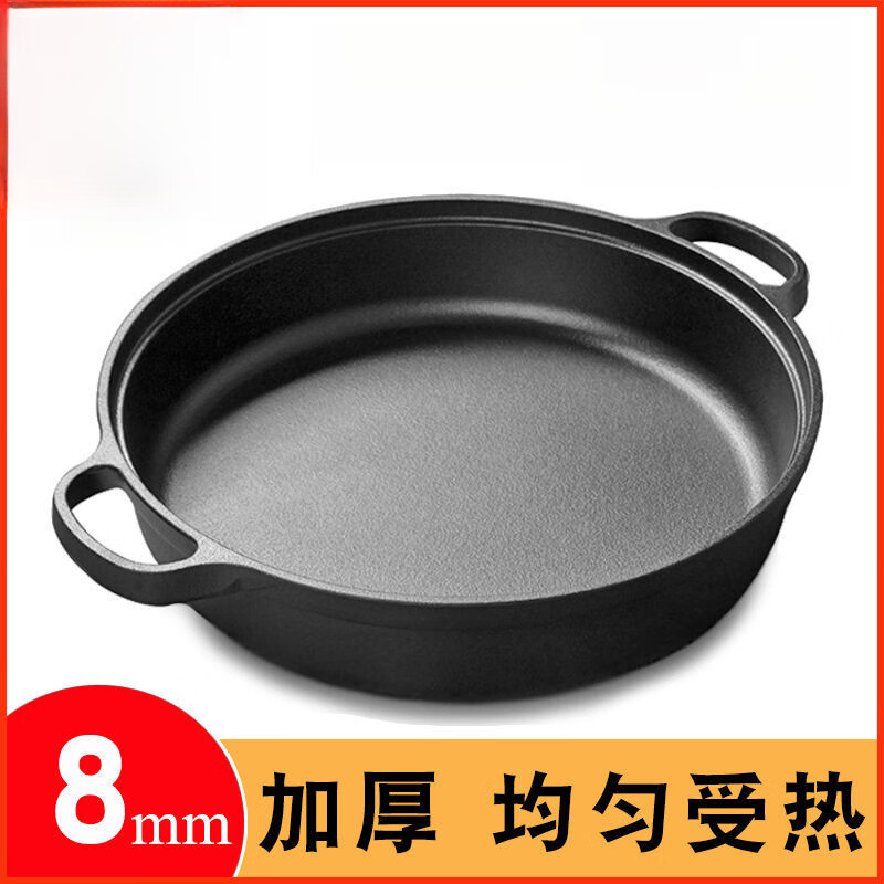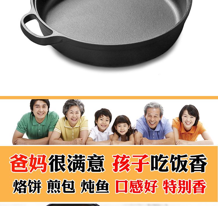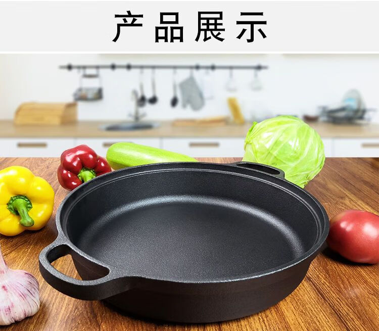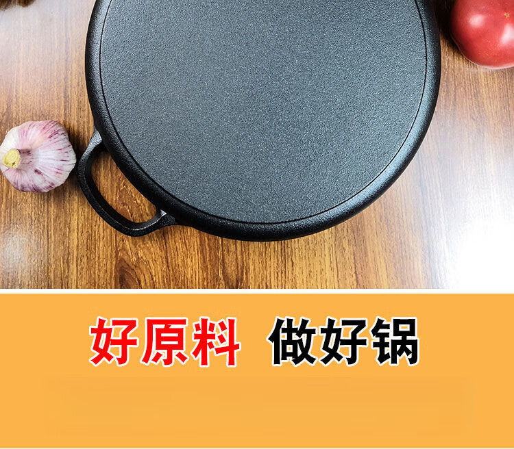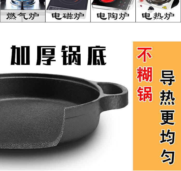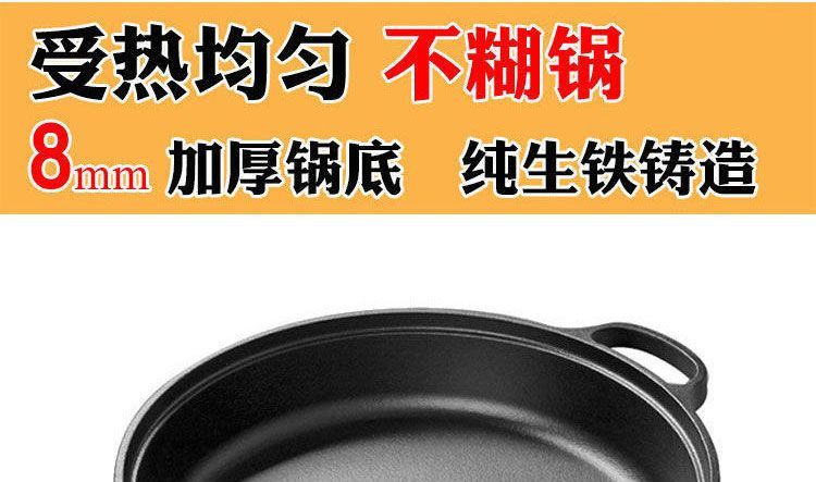 欧品缘铸铁加厚平底烙饼锅不粘锅水煎包锅家用老式不沾生铁饼铛双耳煎锅 29cm(无盖)