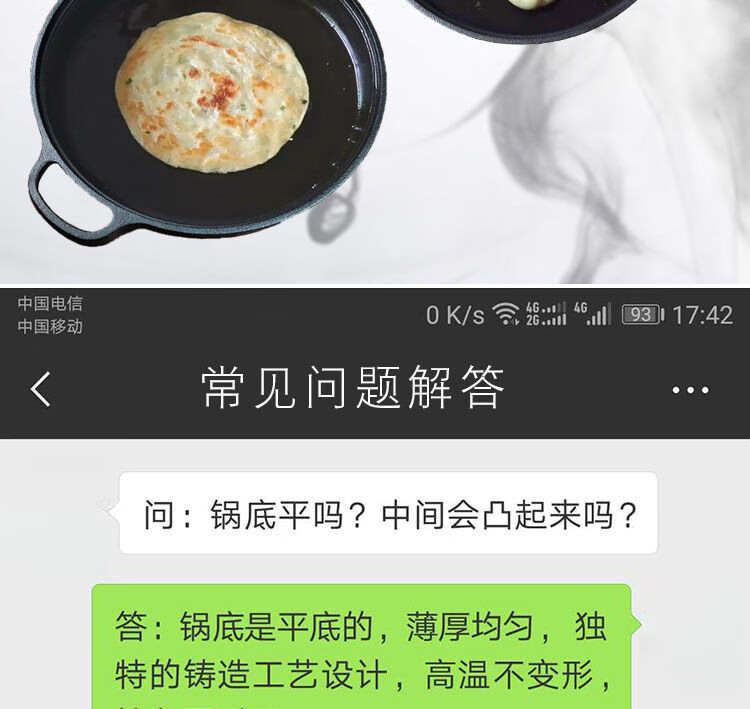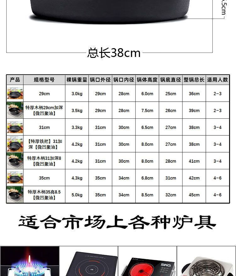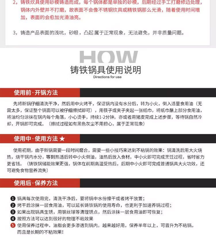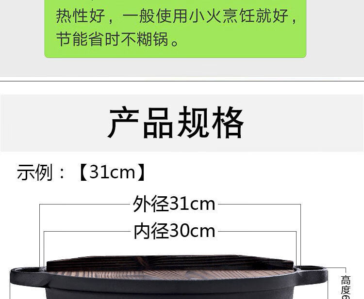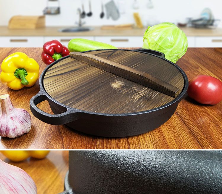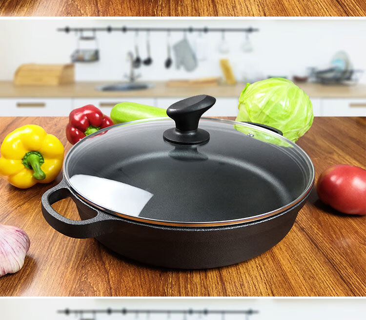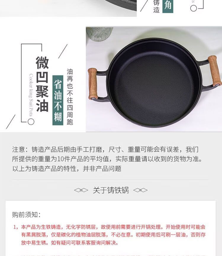 欧品缘铸铁加厚平底烙饼锅不粘锅水煎包锅家用老式不沾生铁饼铛双耳煎锅 29cm(无盖)