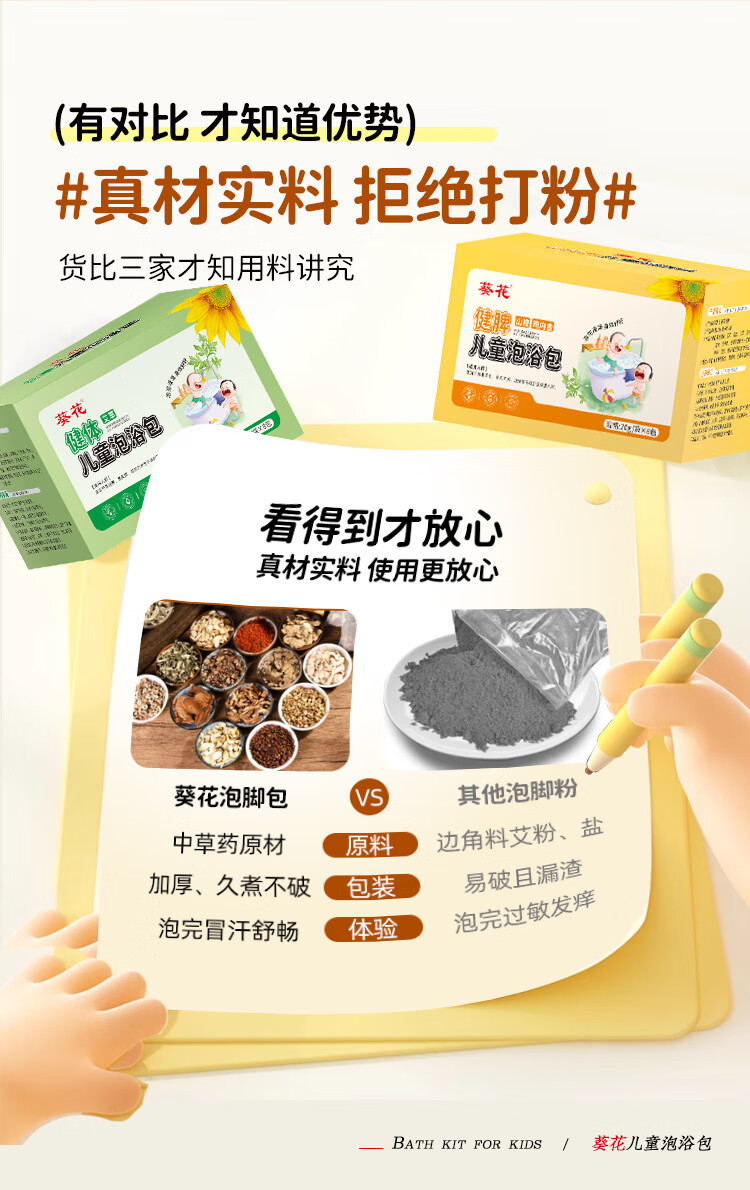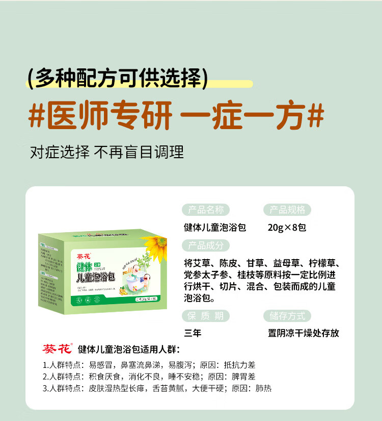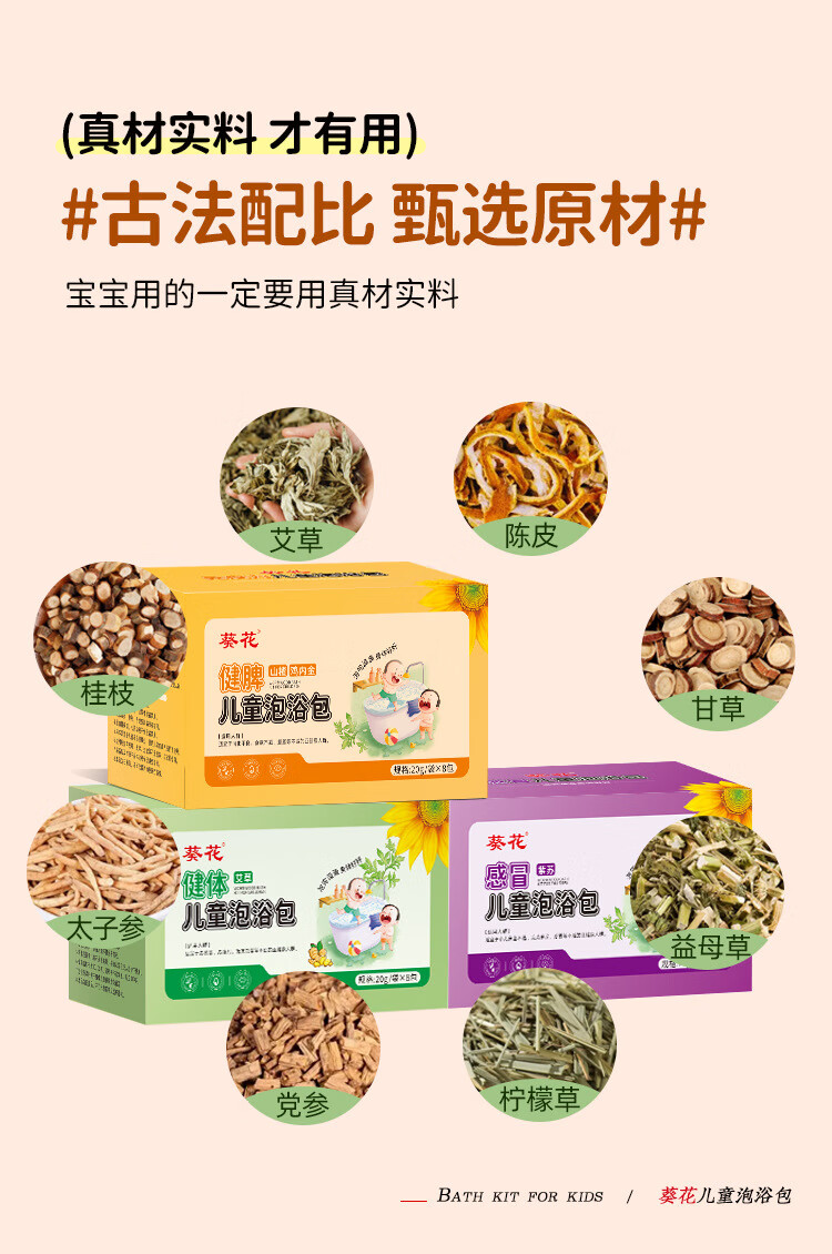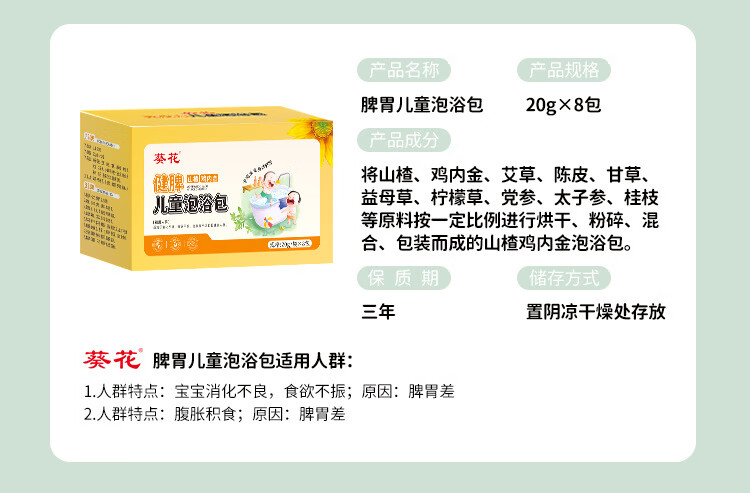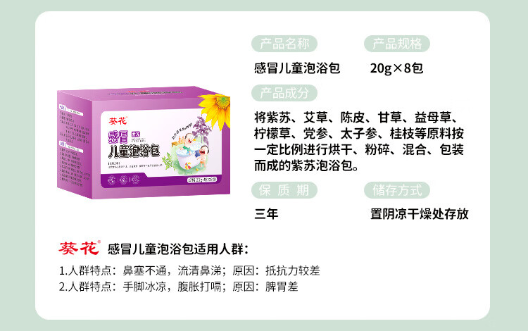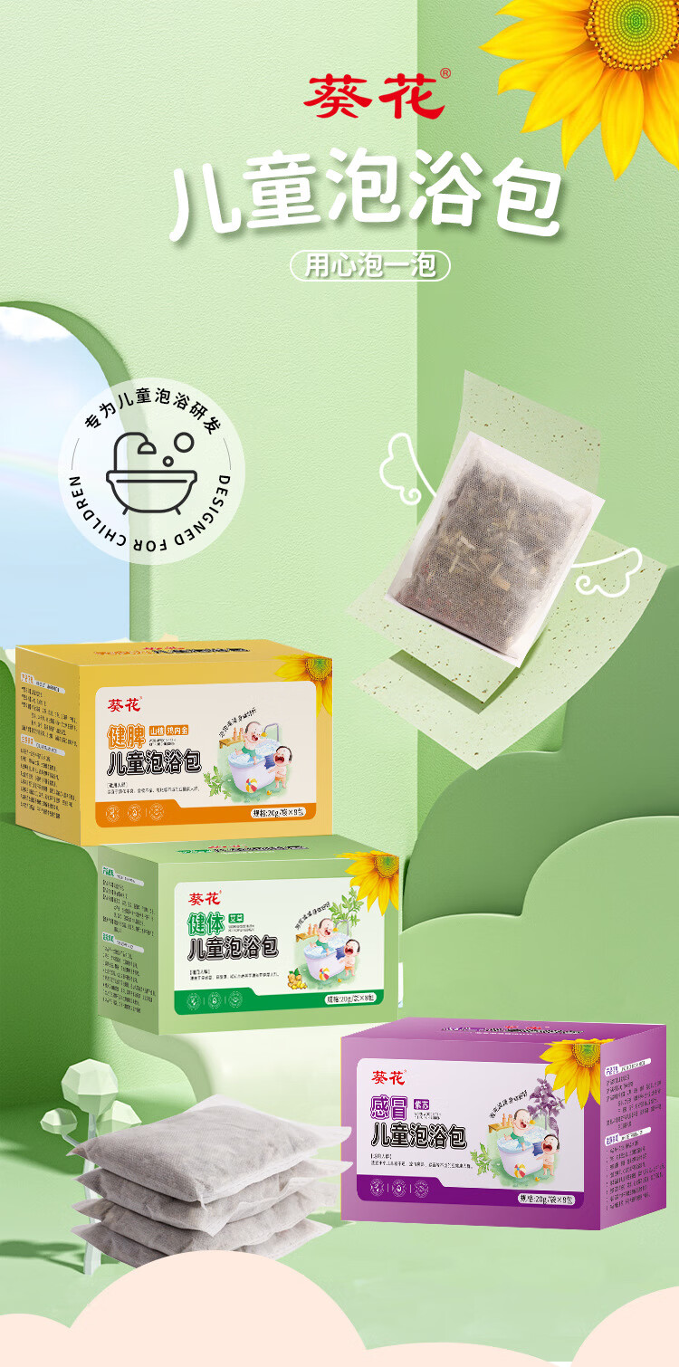 葵花儿童艾草泡澡包紫苏泡脚药包婴儿泡澡药包山楂鸡内金瑶浴包8包/盒 感冒护理装【感冒型*2+健体型】