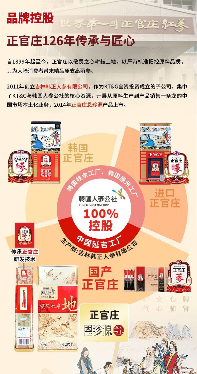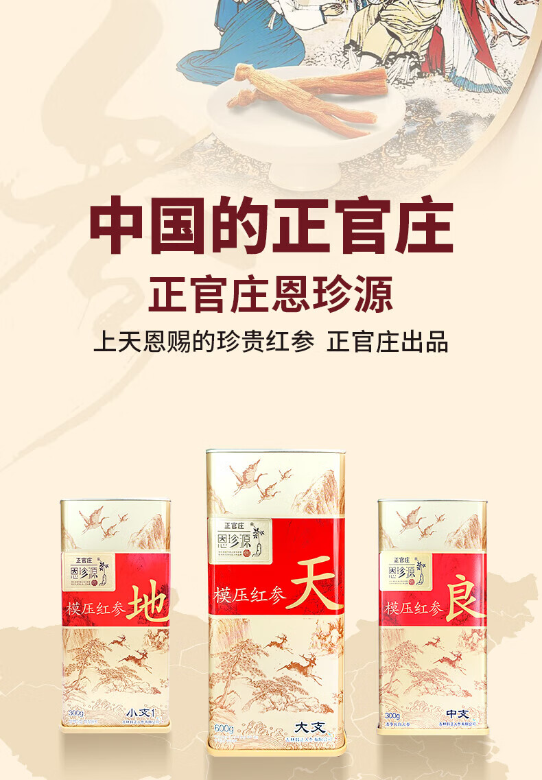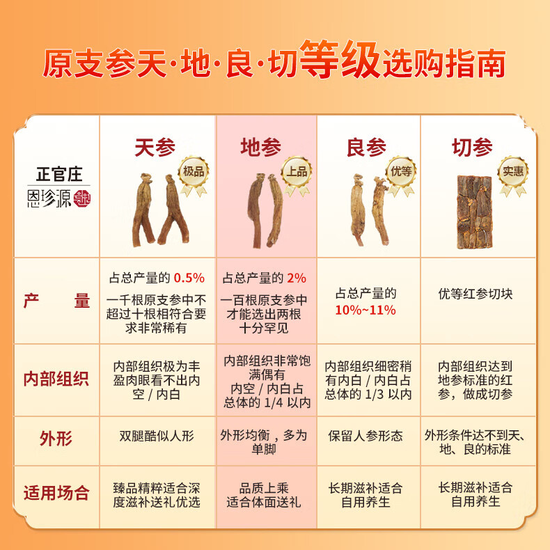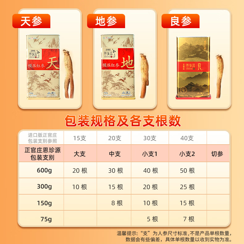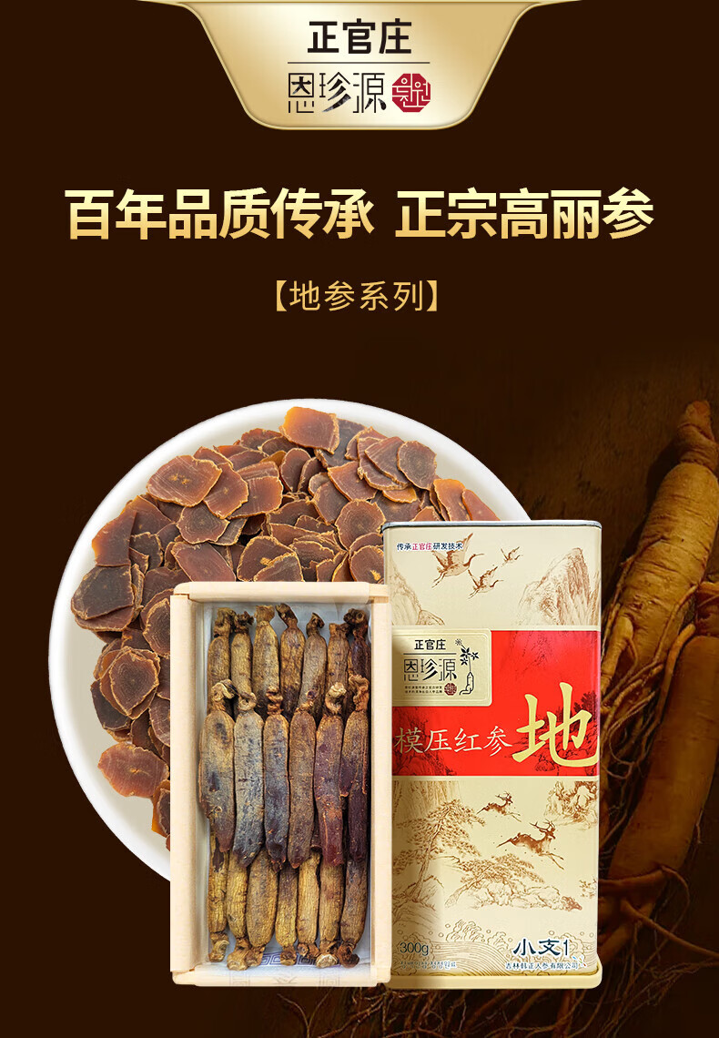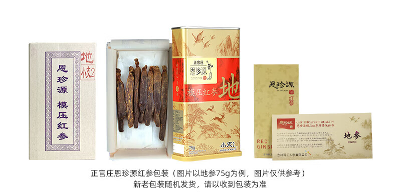 正官庄 恩珍源高丽参【地参】红参5年根长白山人参补气血安神补品礼盒 【地参】小支2- 75g*1盒 32种皂苷类