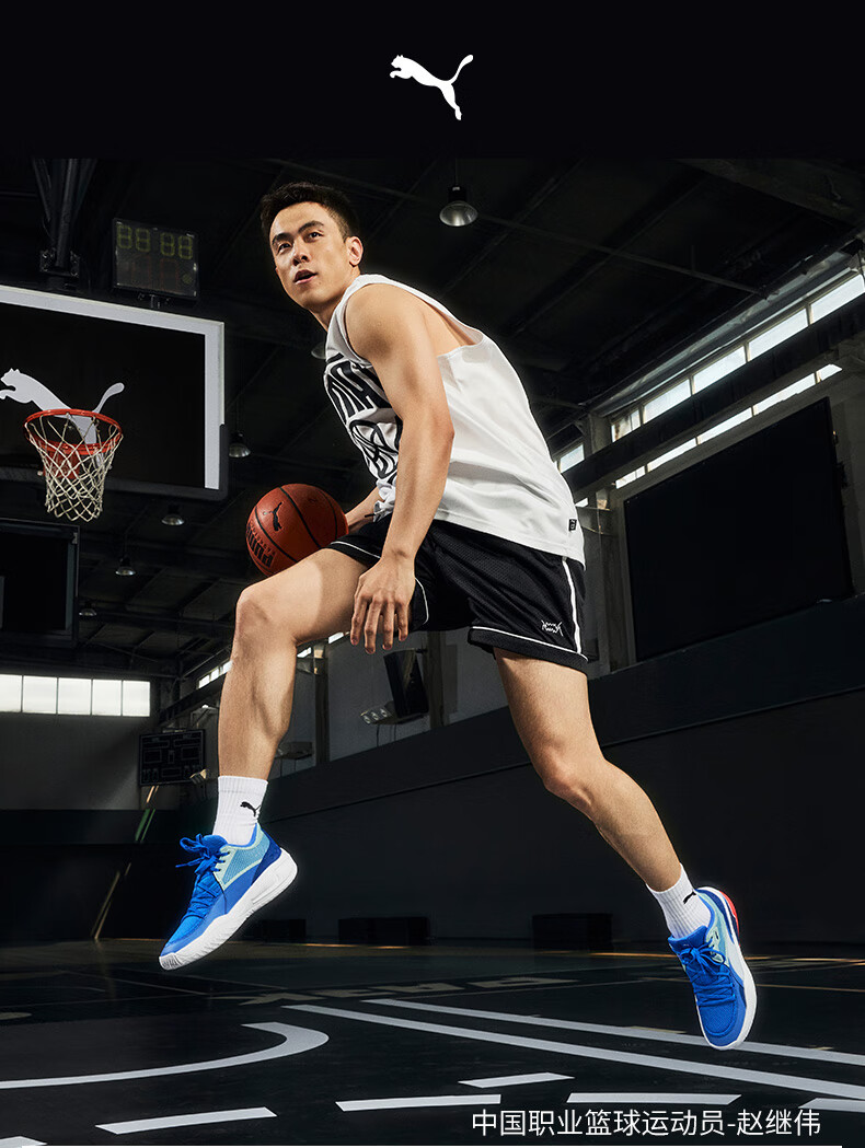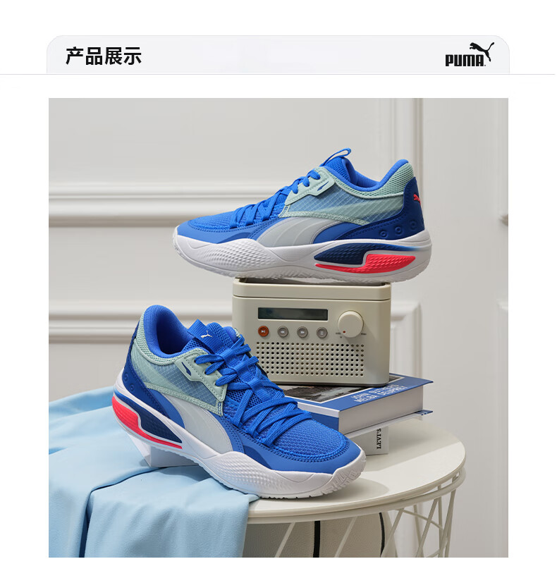 彪马(PUMA)赵继伟同款缓震防滑透气实战篮球鞋男女COURTRIDER195634 蓝色-蓝绿色-05 42