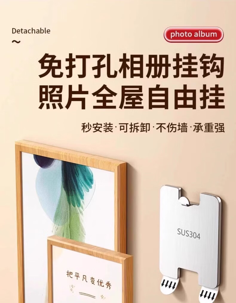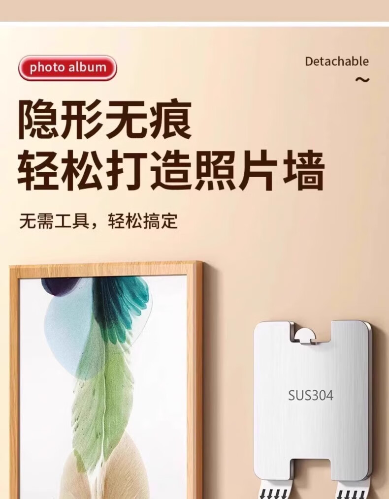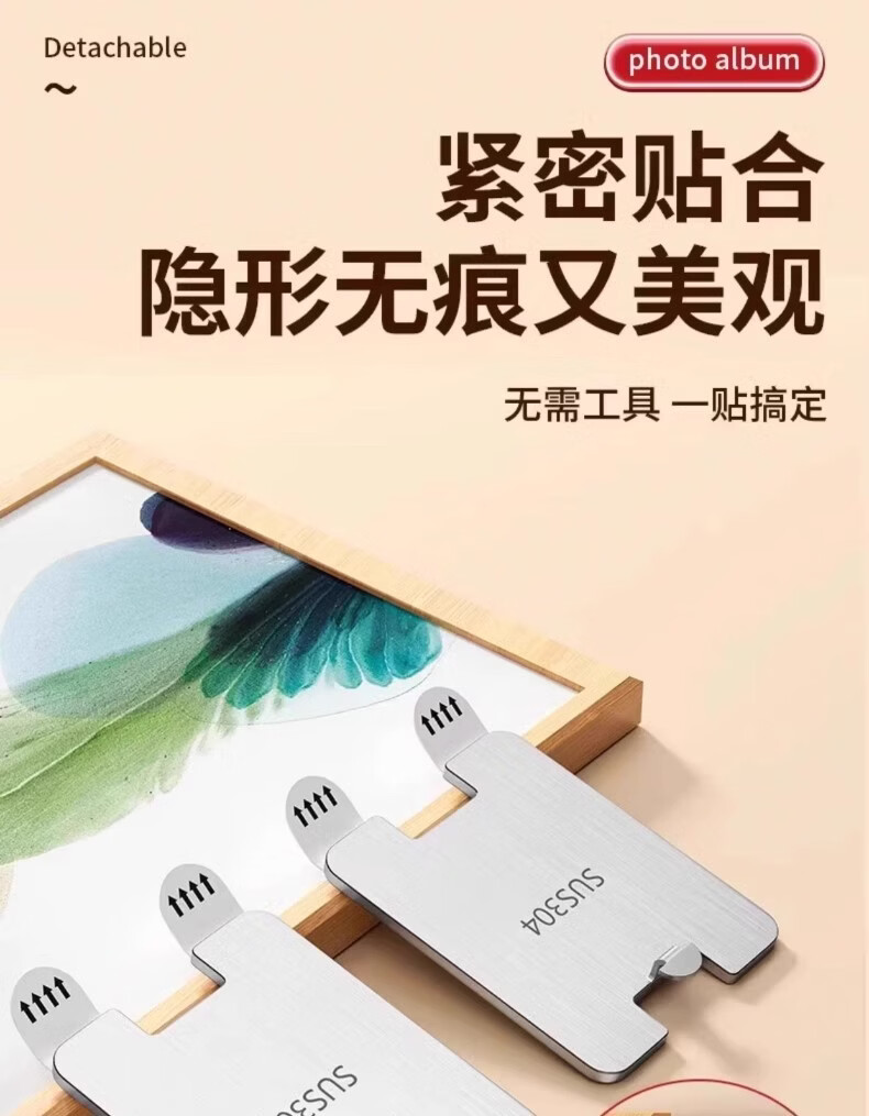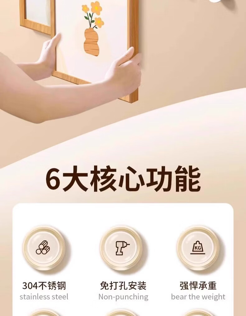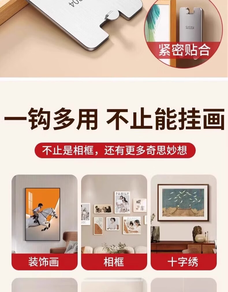 飒望德国挂画神器免打孔不伤乳胶漆墙相框挂墙挂钩无痕钉婚纱照专用钉 【6个装】可重复使用-牢固随心挂