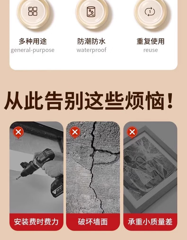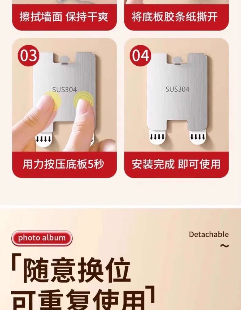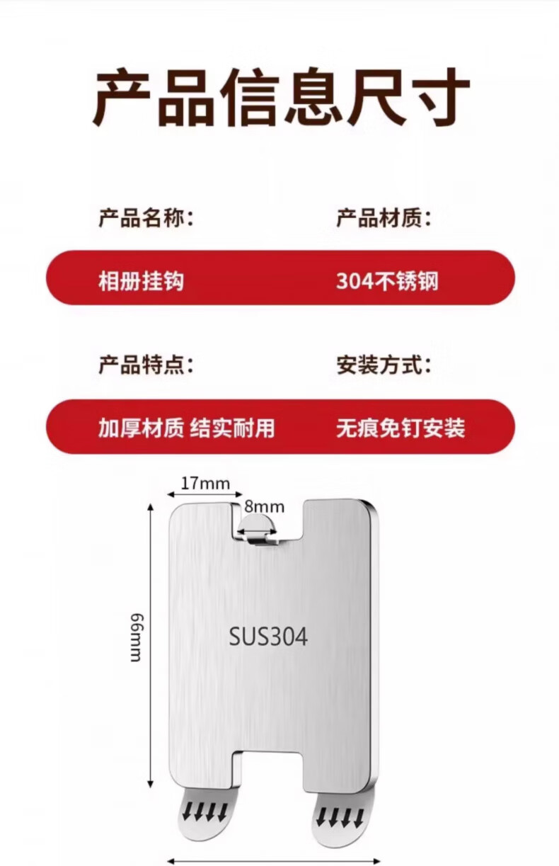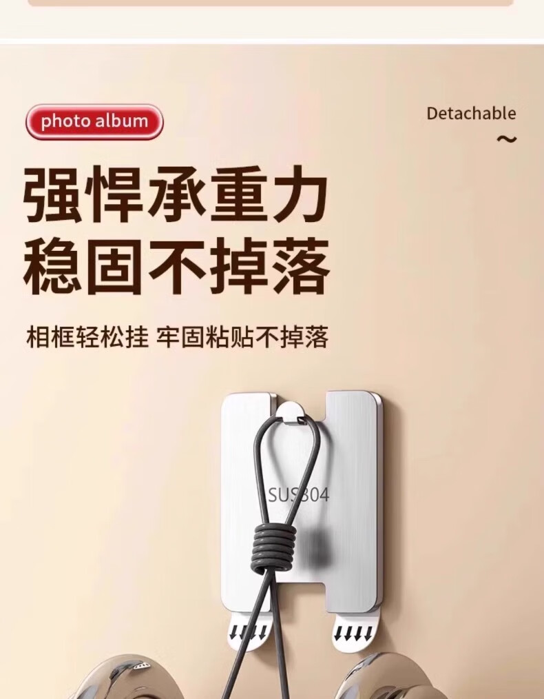 飒望德国挂画神器免打孔不伤乳胶漆墙相框挂墙挂钩无痕钉婚纱照专用钉 【6个装】可重复使用-牢固随心挂