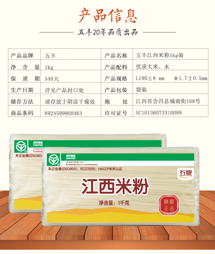 五丰江西米粉1kg 纯米制作 米粉米线南昌拌粉螺蛳粉减脂速食供港品质