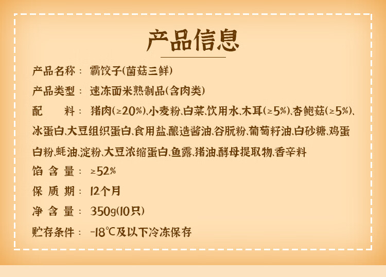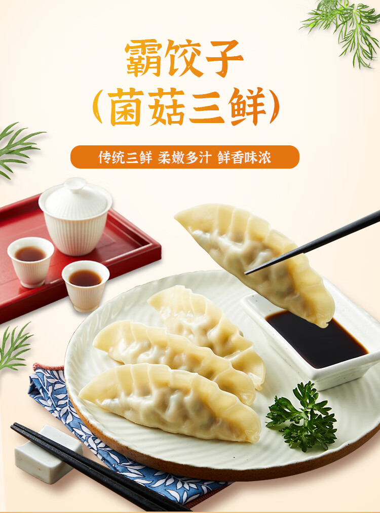 峻阳兄弟(JUNYANG BROTHER)霸饺子王水饺猪肉菌菇三鲜350g*5包蒸煎饺学生早餐宵夜半成品速食 霸饺子菌菇三鲜350克*5包