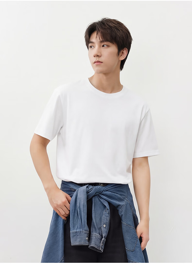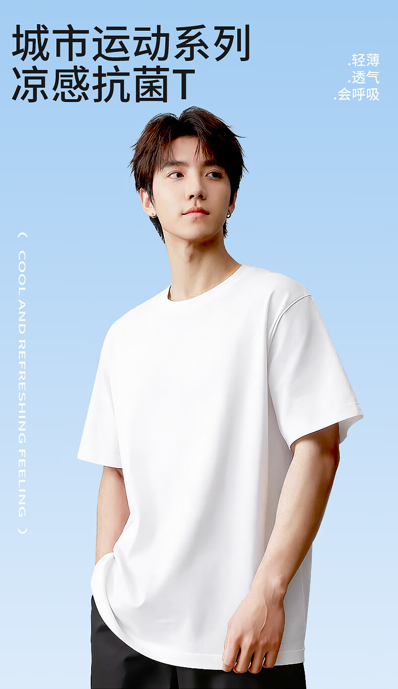 真维斯(Jeanswest)男士圆领短袖抗菌T恤2026春夏款吸湿速干体恤潮流印花舒适打底衫 冰蓝 小莲花_K M