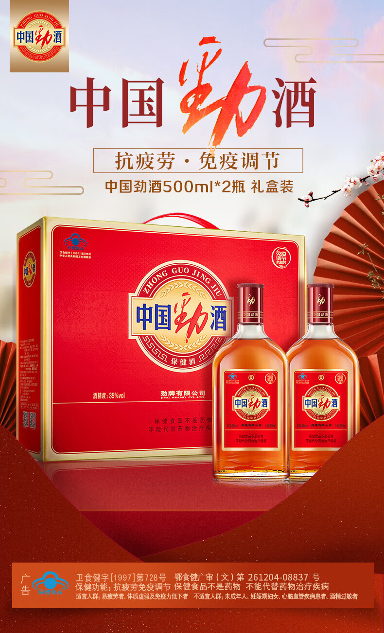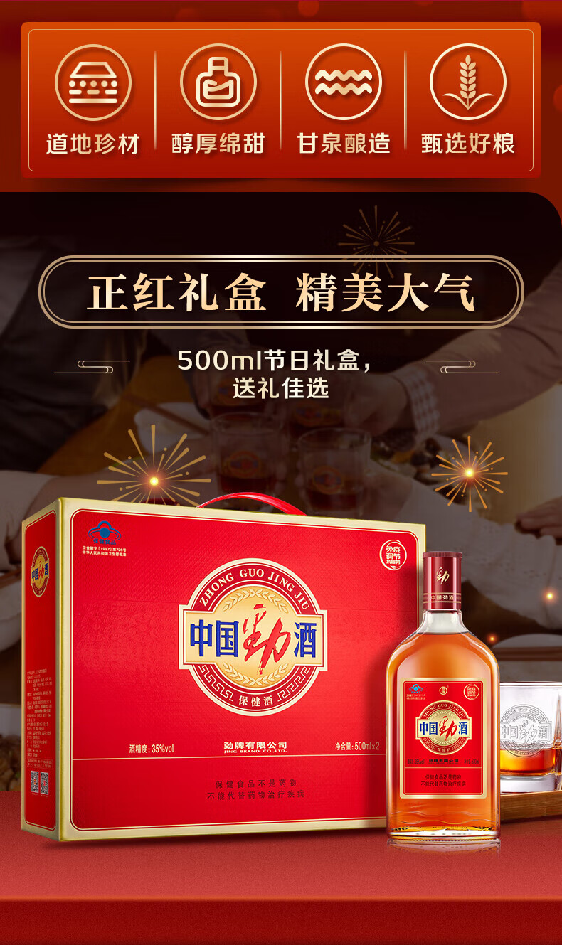 劲牌35度 500ml/520ml*2瓶中国劲酒礼盒装春节送礼节日礼品 35度 500mL 2瓶 礼盒