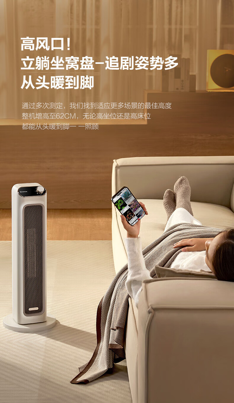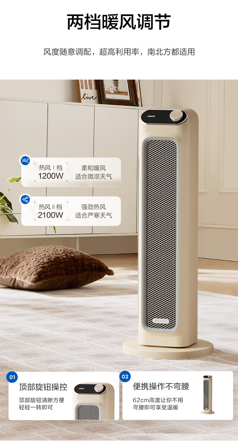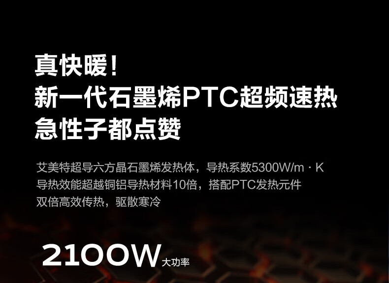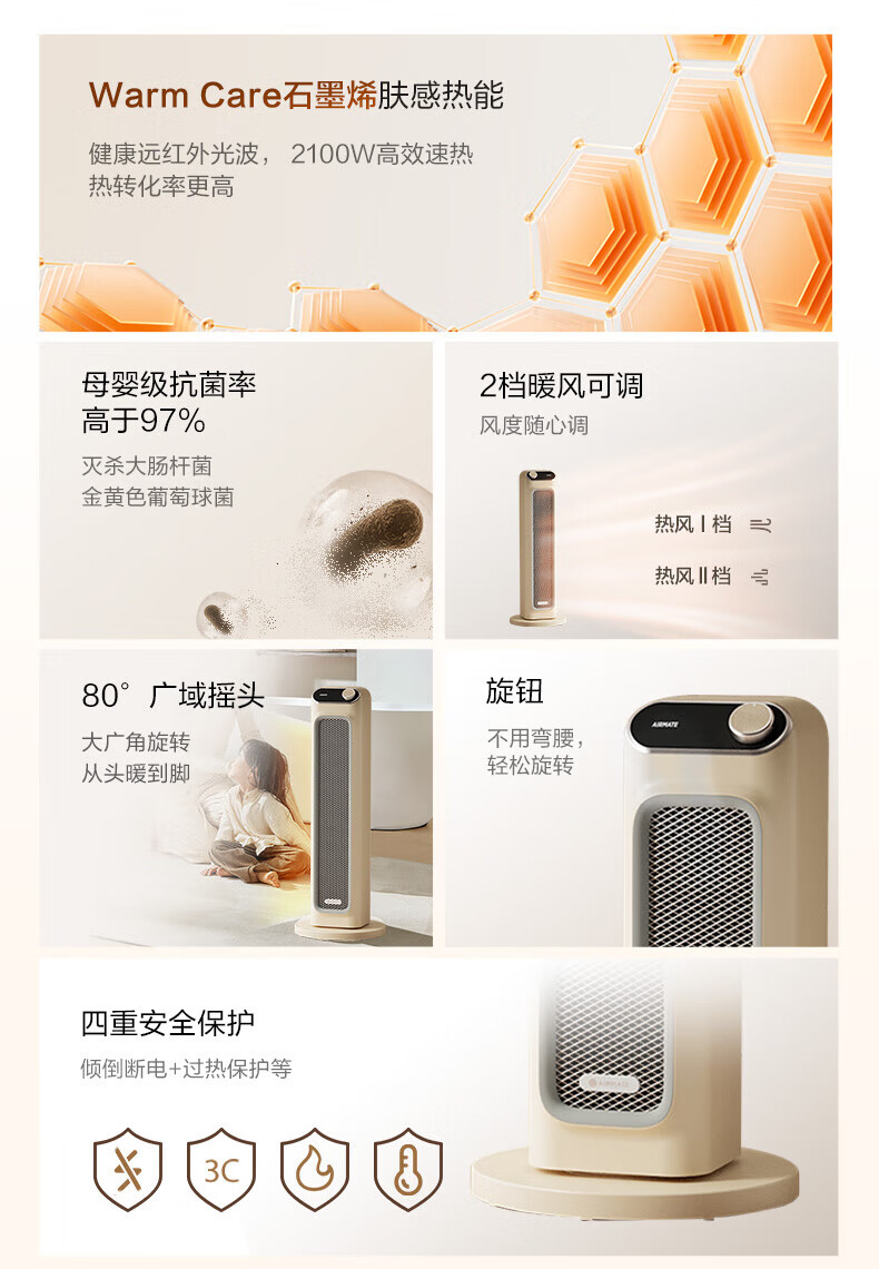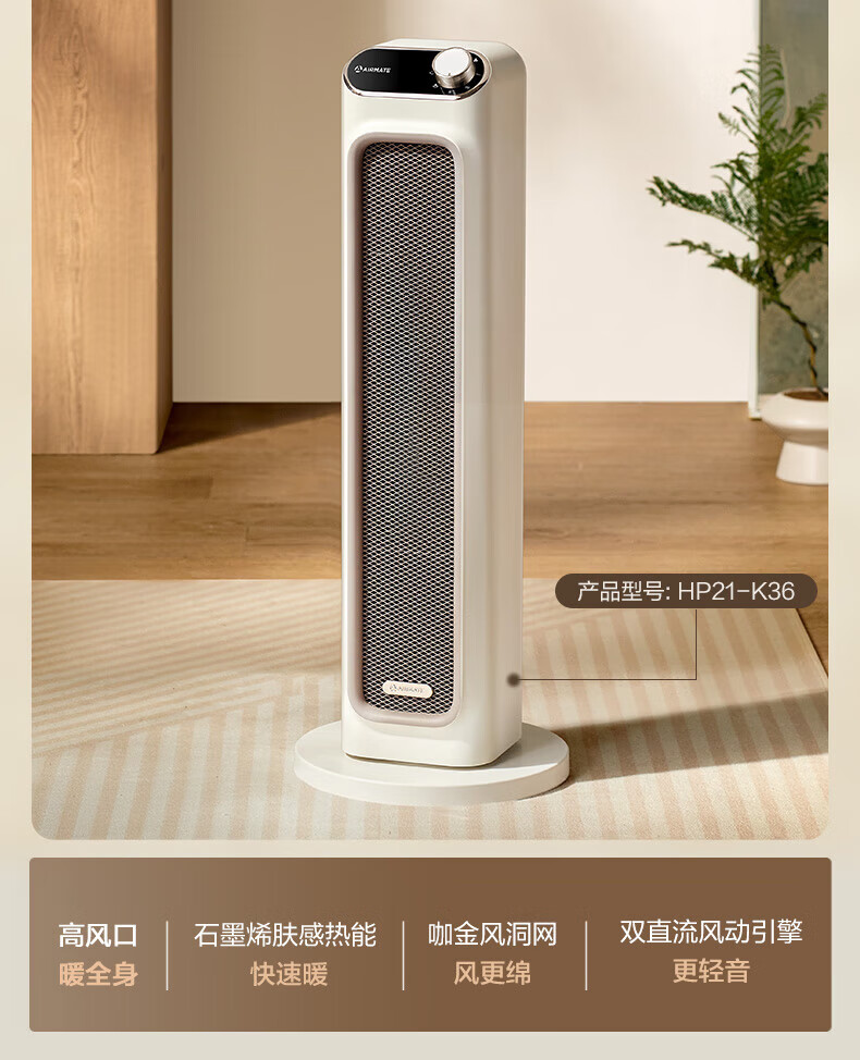 艾美特(AIRMATE)取暖器家用暖风机石墨烯即热智能控温节能远程遥控电暖气立式80度摇头3档可拆洗倾倒断电 【2100W+升级石墨烯】HP21-K36