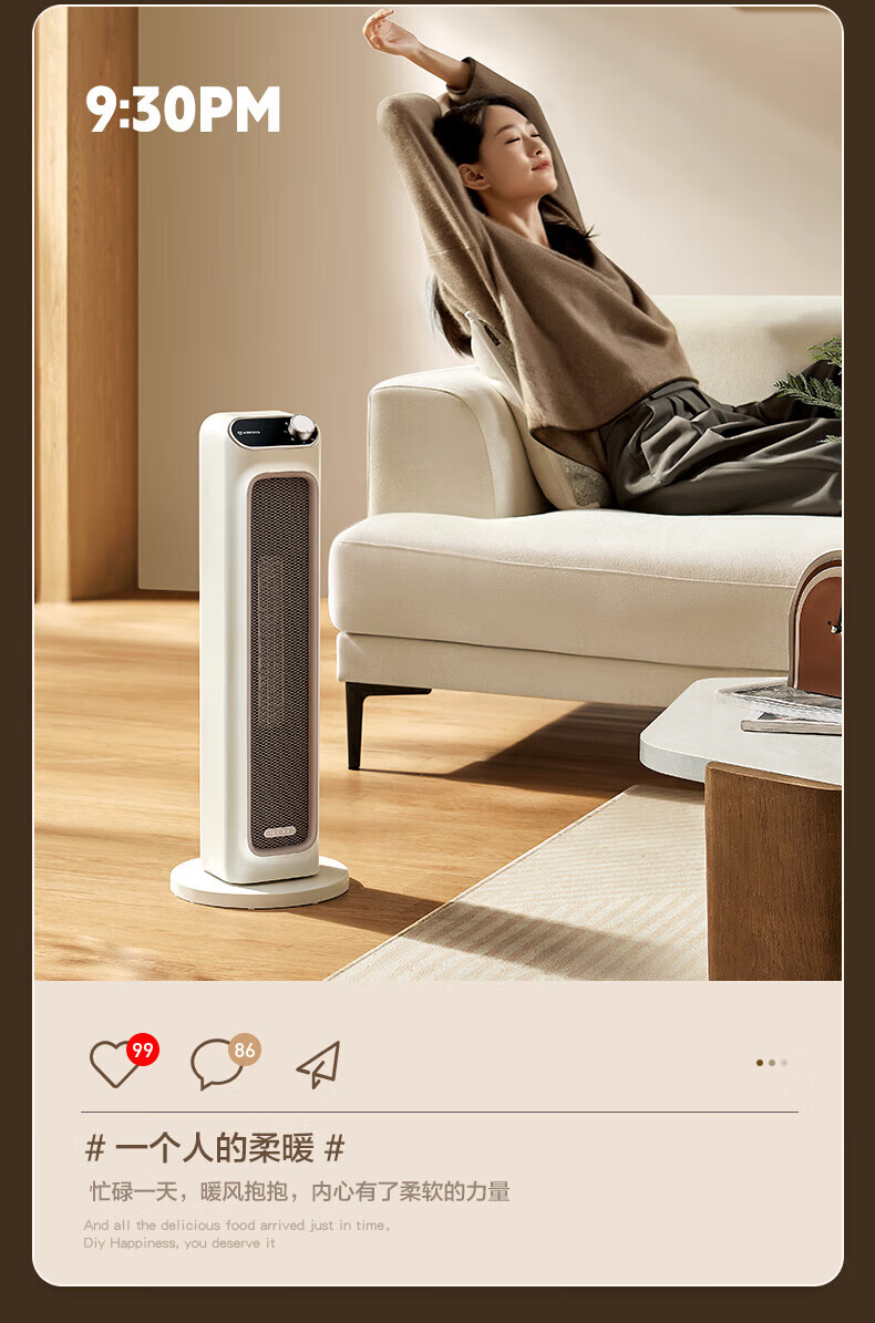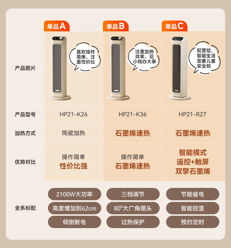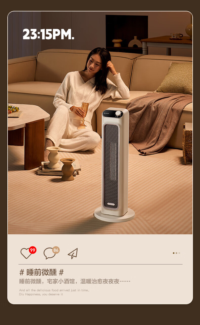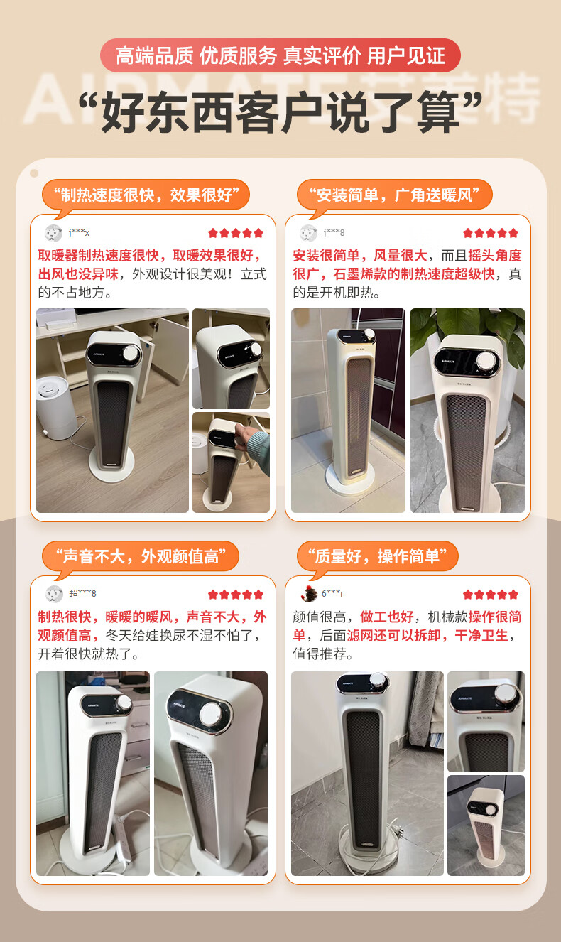 艾美特(AIRMATE)取暖器家用暖风机石墨烯即热智能控温节能远程遥控电暖气立式80度摇头3档可拆洗倾倒断电 【2100W+升级石墨烯】HP21-K36