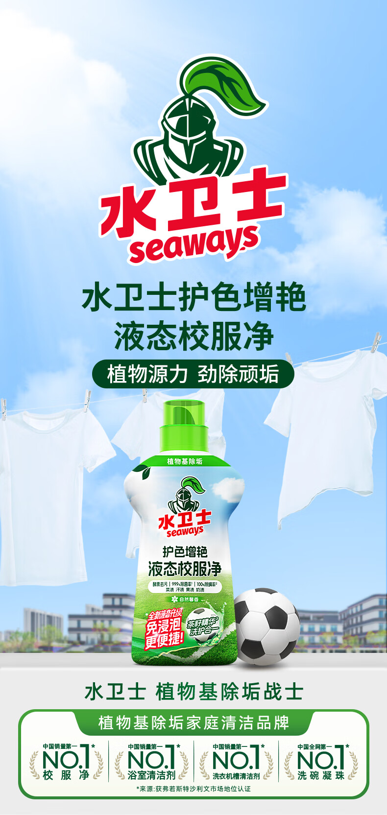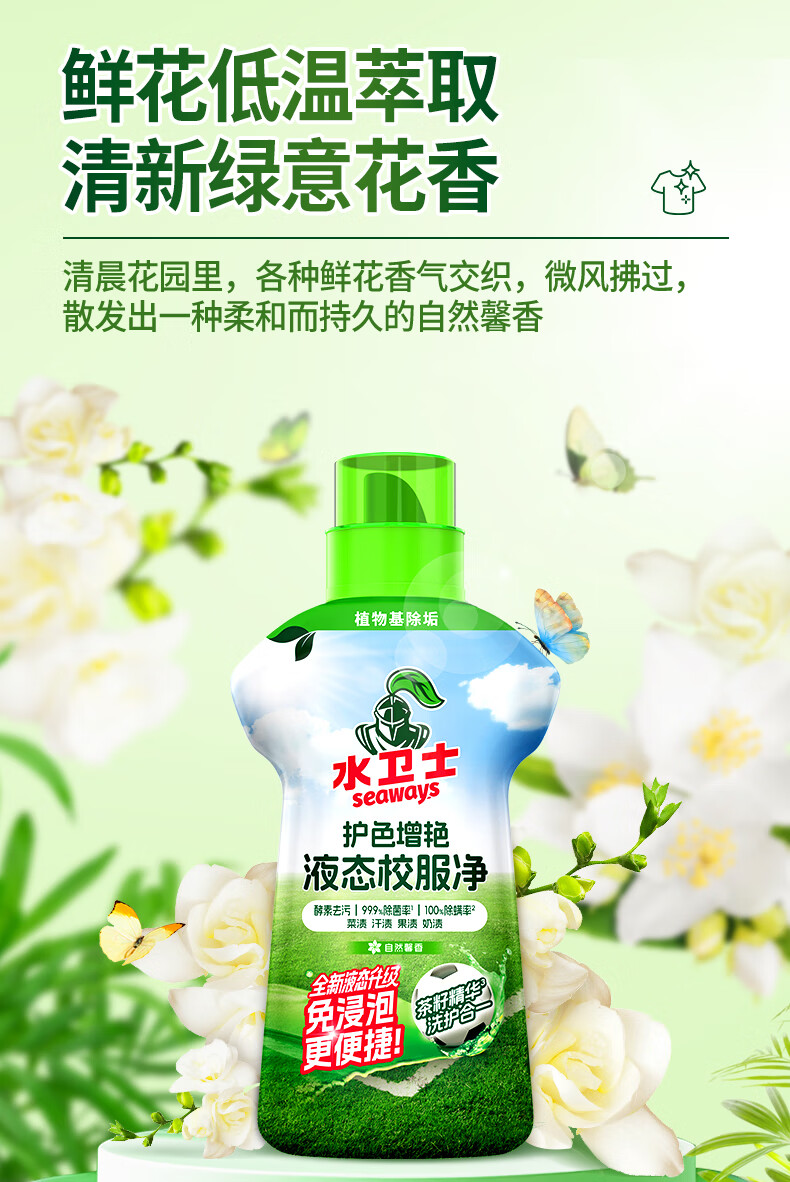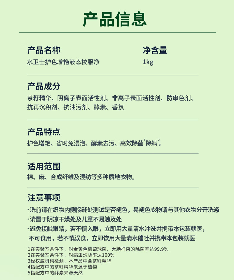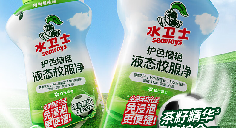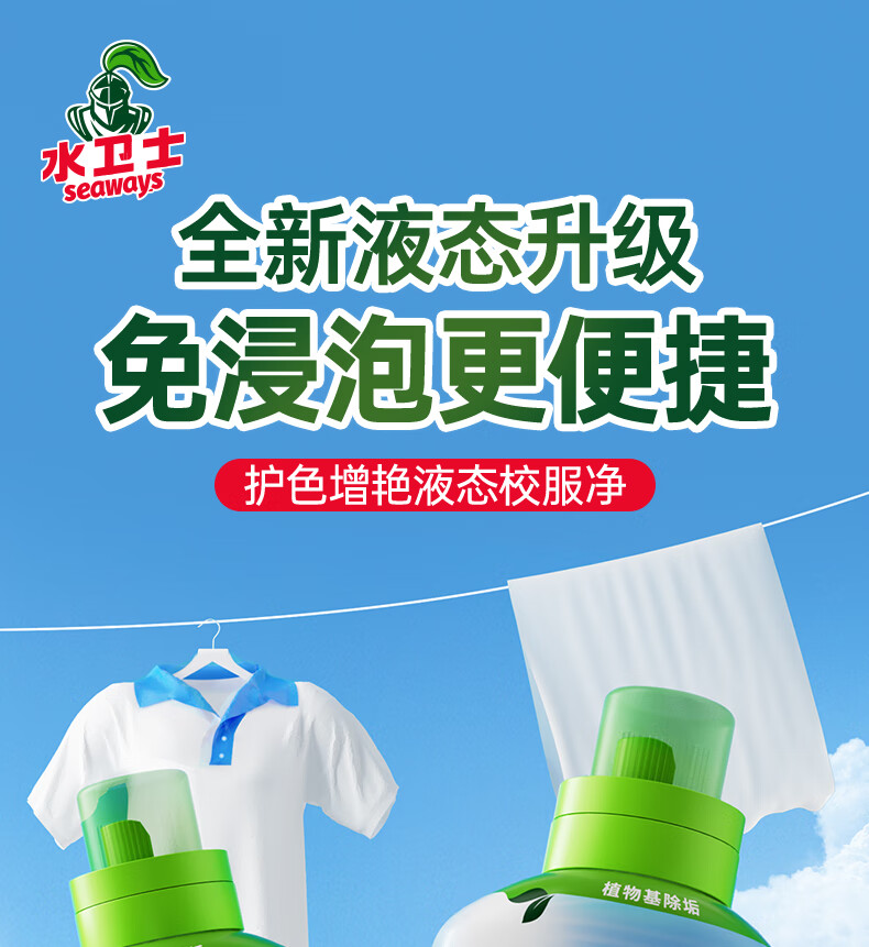 水卫士液态校服净洗衣去污渍彩漂彩色衣物通用去黄除菌液态新升级 液态校服净1kg*2瓶