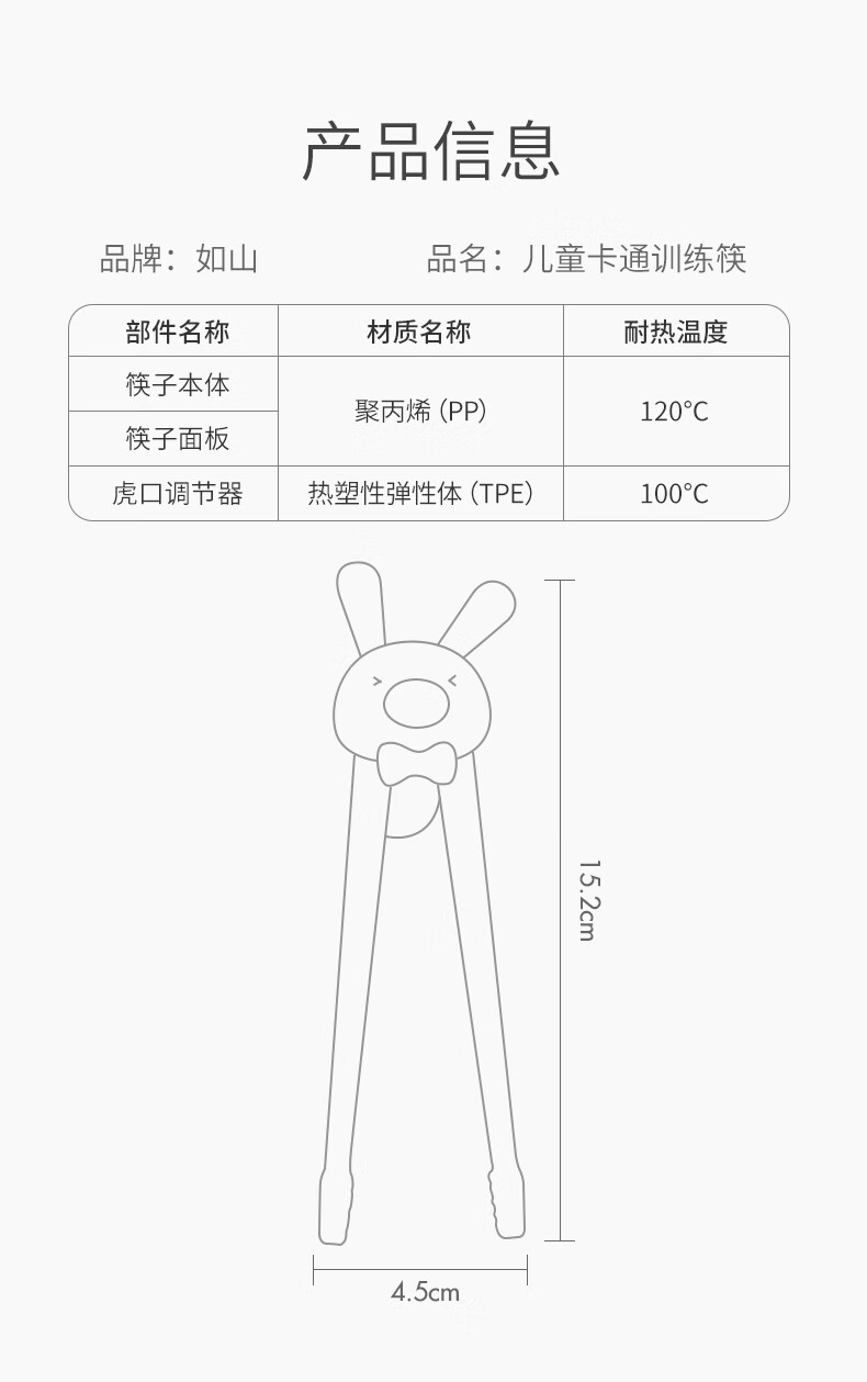 如山(LUSN)儿童筷子宝宝学习幼儿练习虎口训练筷二段餐具 幸运兔