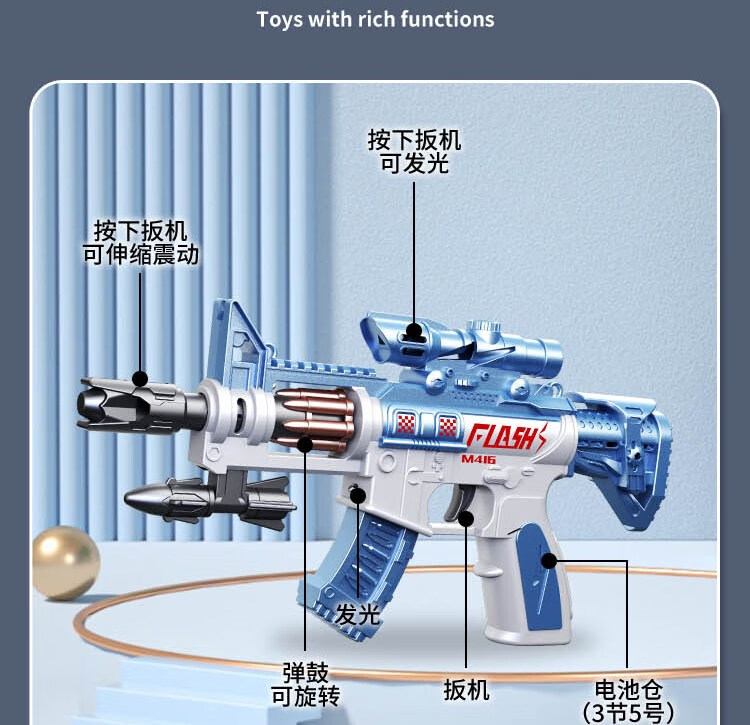 亲巴贝儿童玩具电动声光冲锋枪手炝1-3-6岁宝宝男女孩生日春节新年礼物