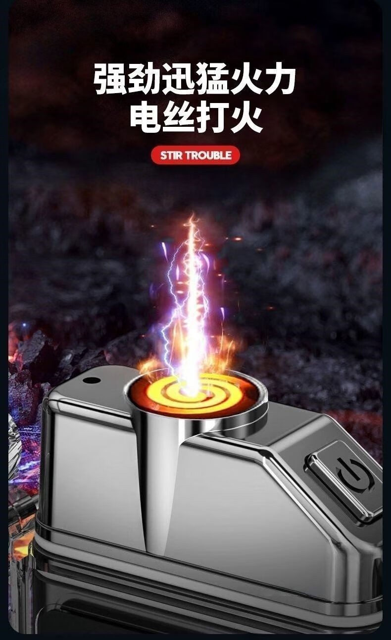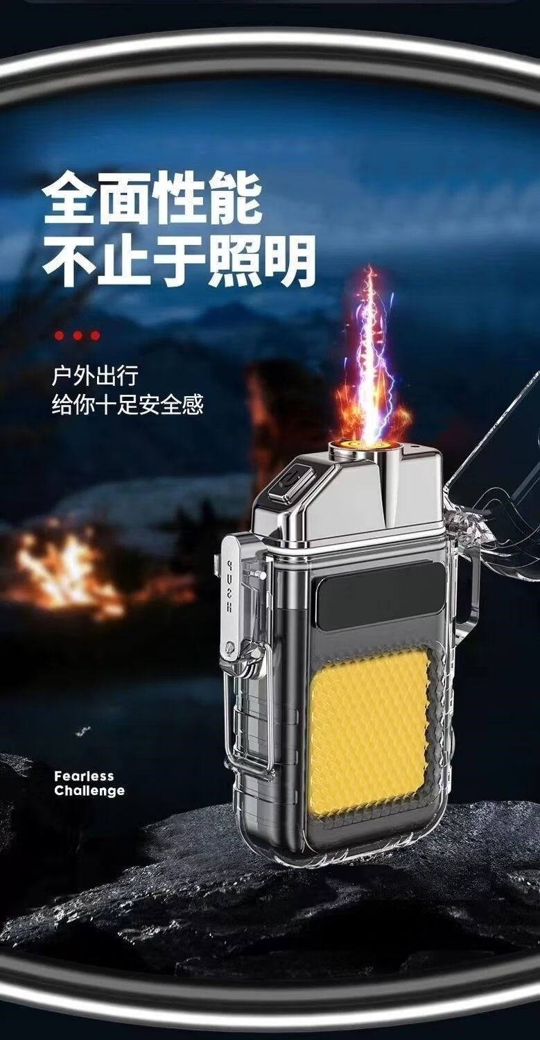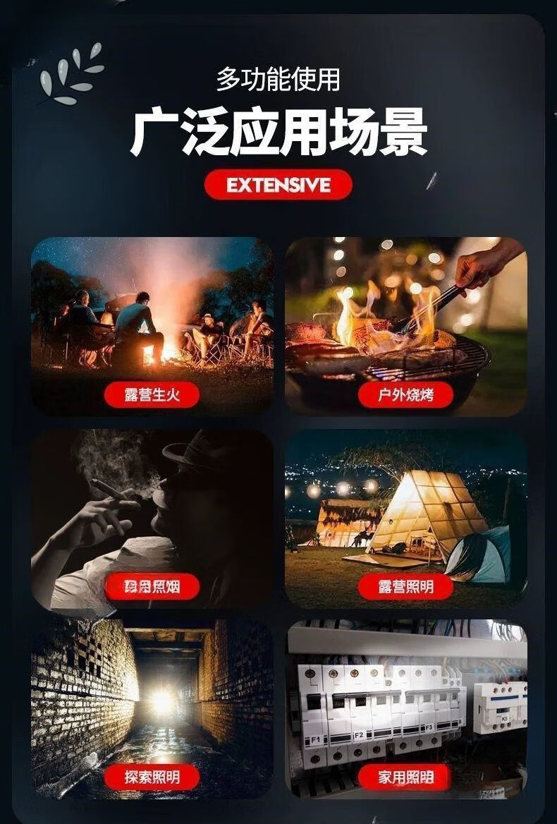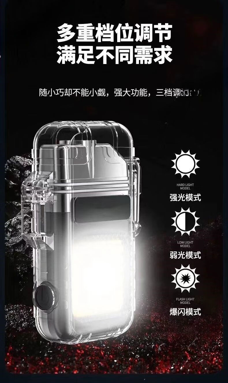 防风打火机充电多功能强光手电筒电子点烟器无明火点烟器安全便携 高亮599K【电热丝打火 大泛光照明】