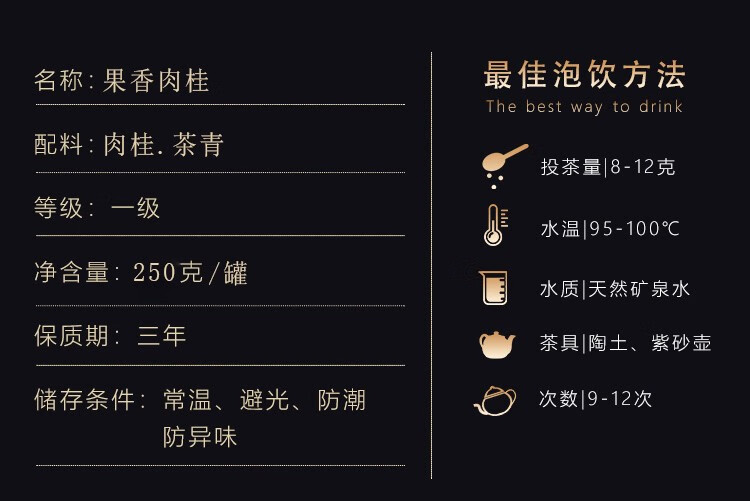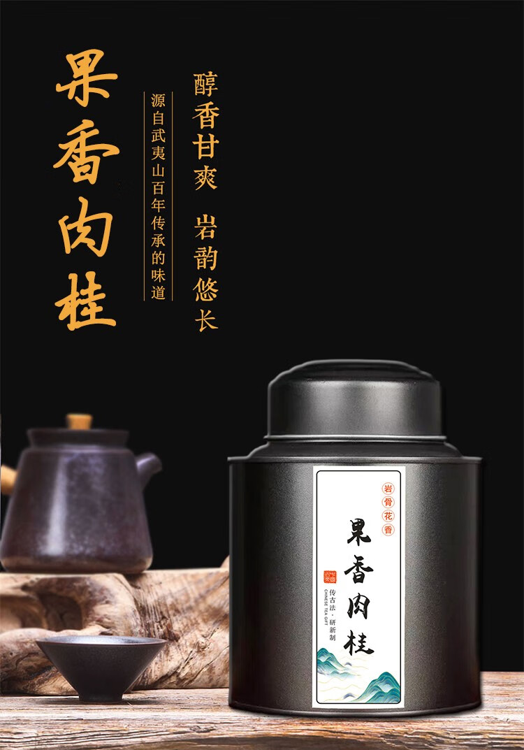 瑞锦成原产地直供茶叶 高品质武夷山岩茶闽北乌龙茶果香肉桂散茶 黑色铁罐 配礼袋 250g*1罐