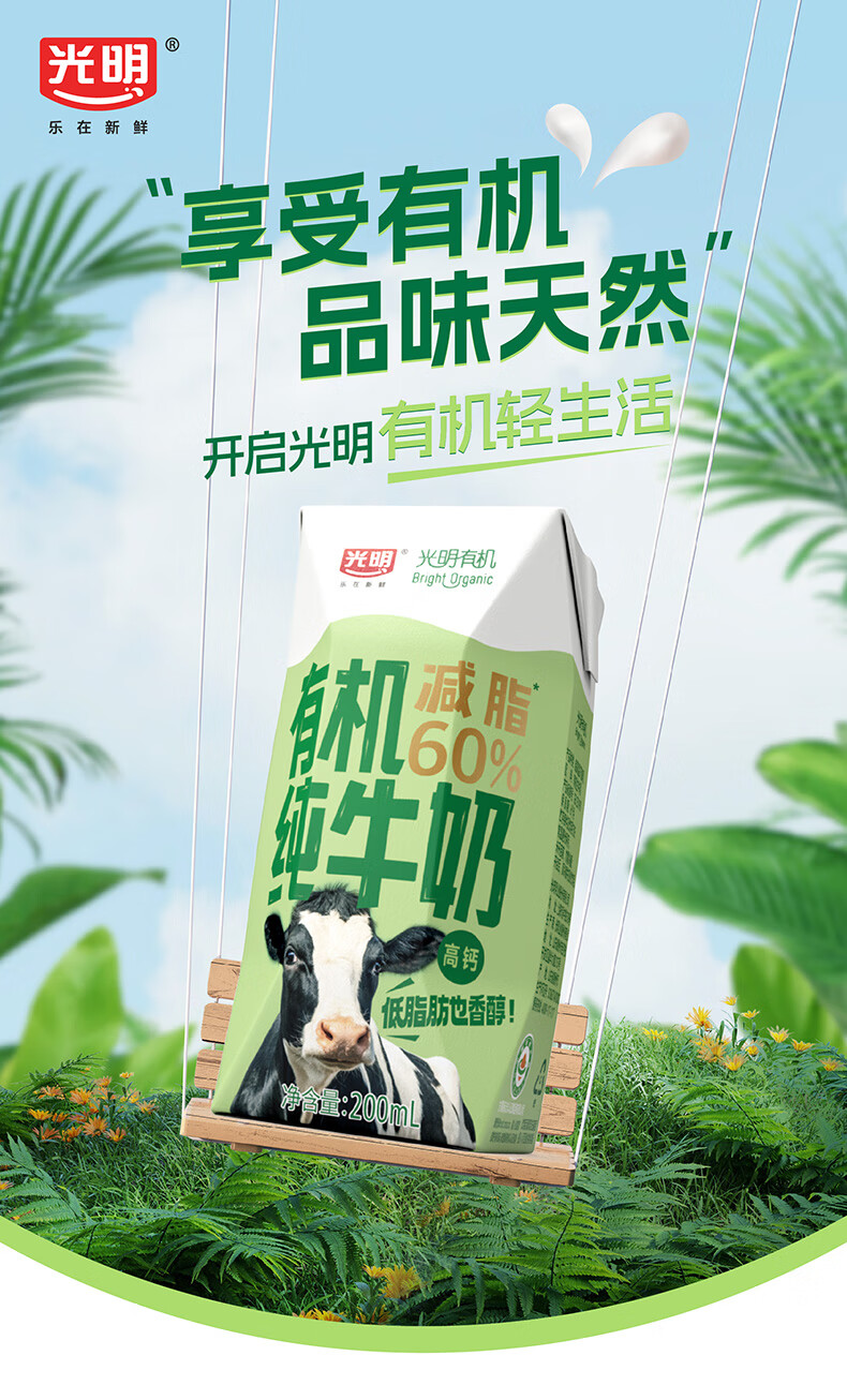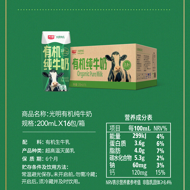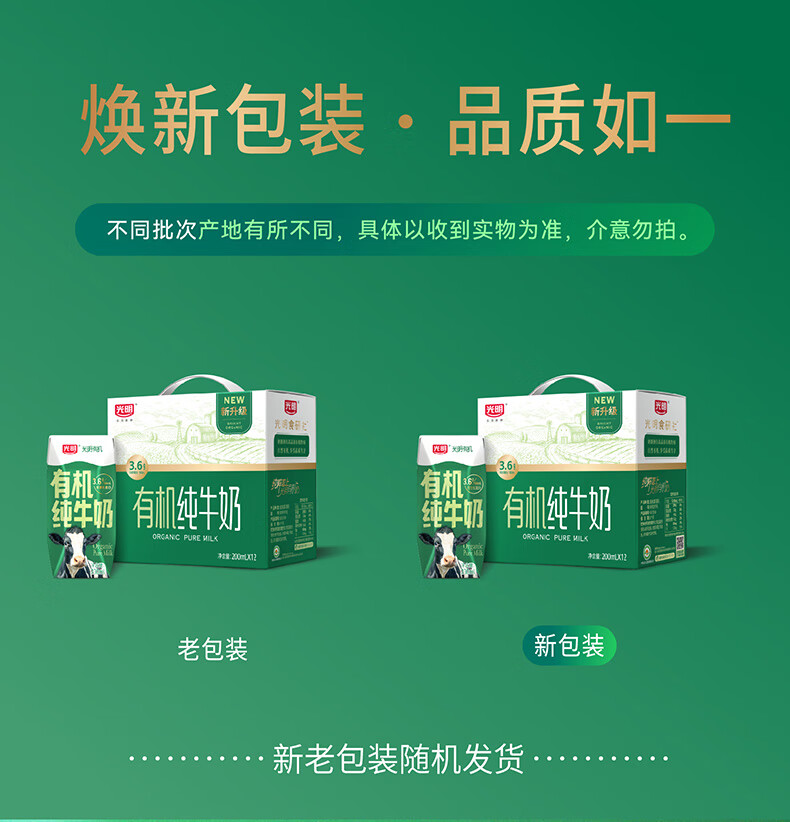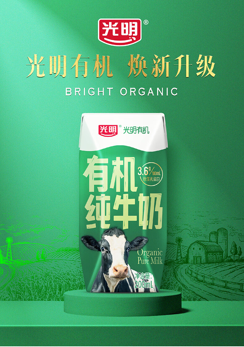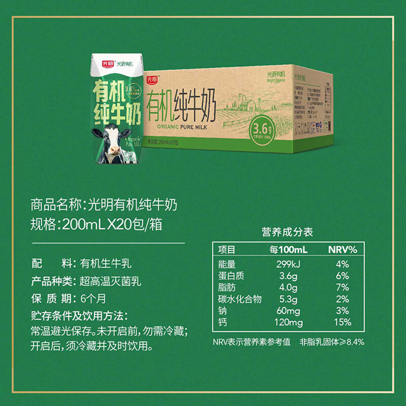 光明有机纯牛奶整箱纯牛奶年货送礼礼盒 有机纯牛奶200ml*20【11月产】
