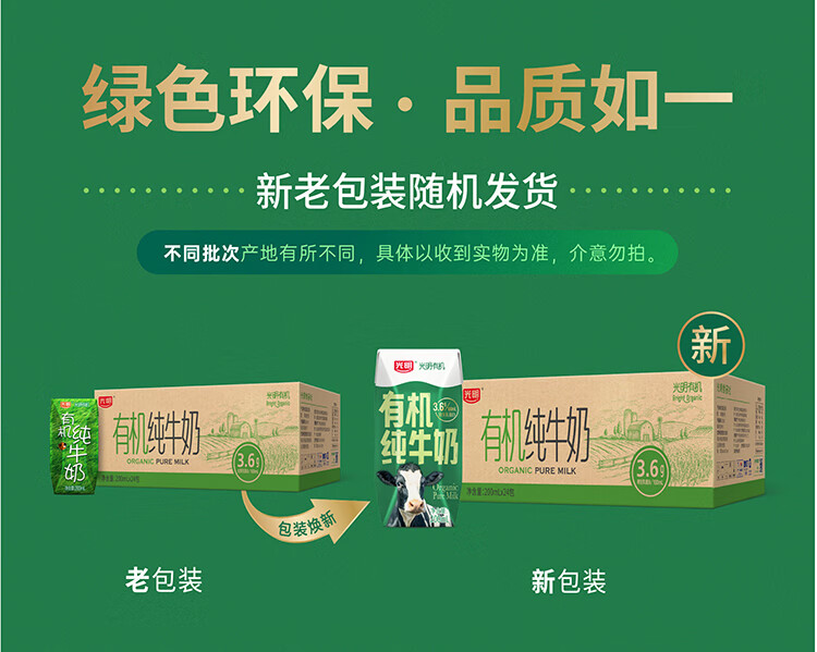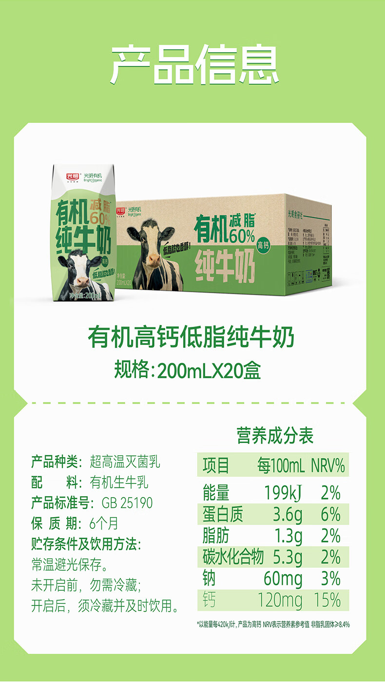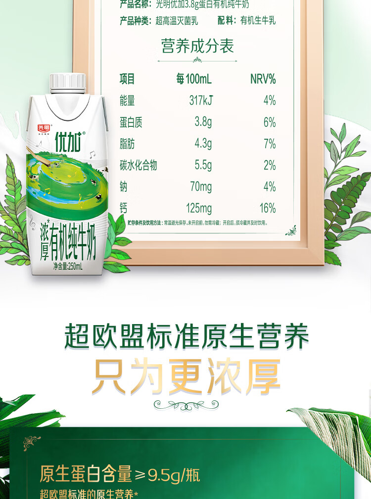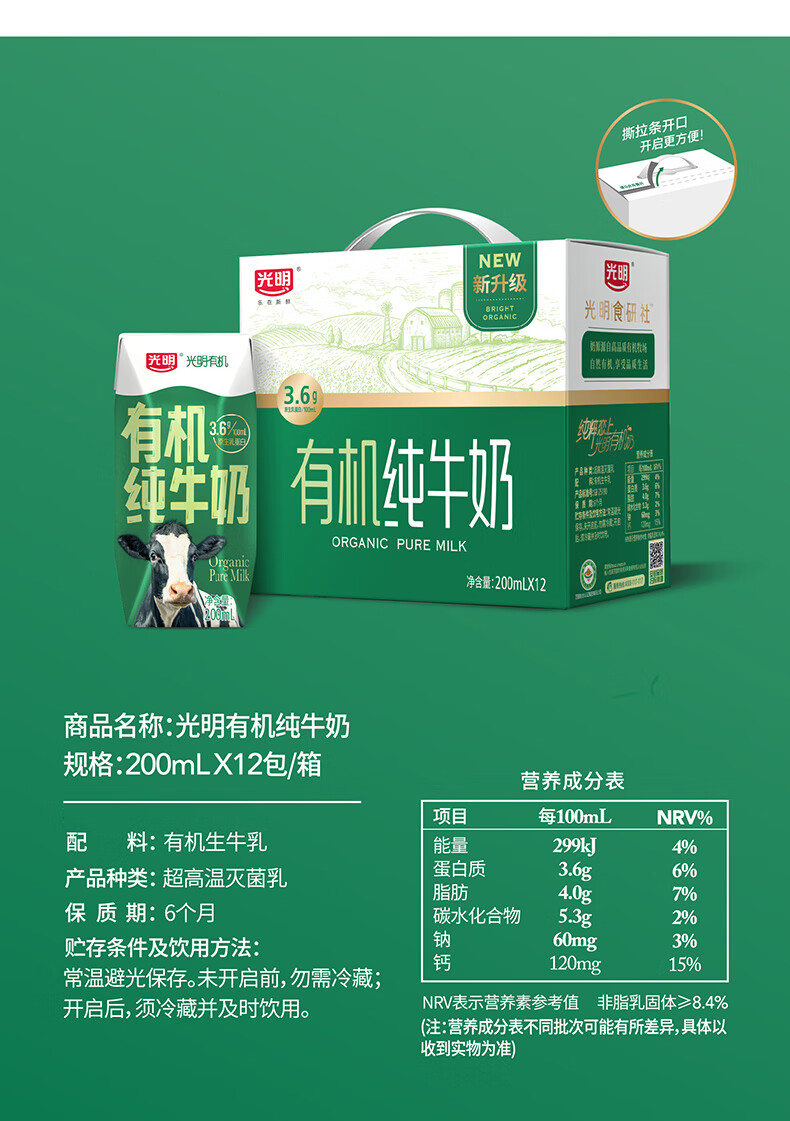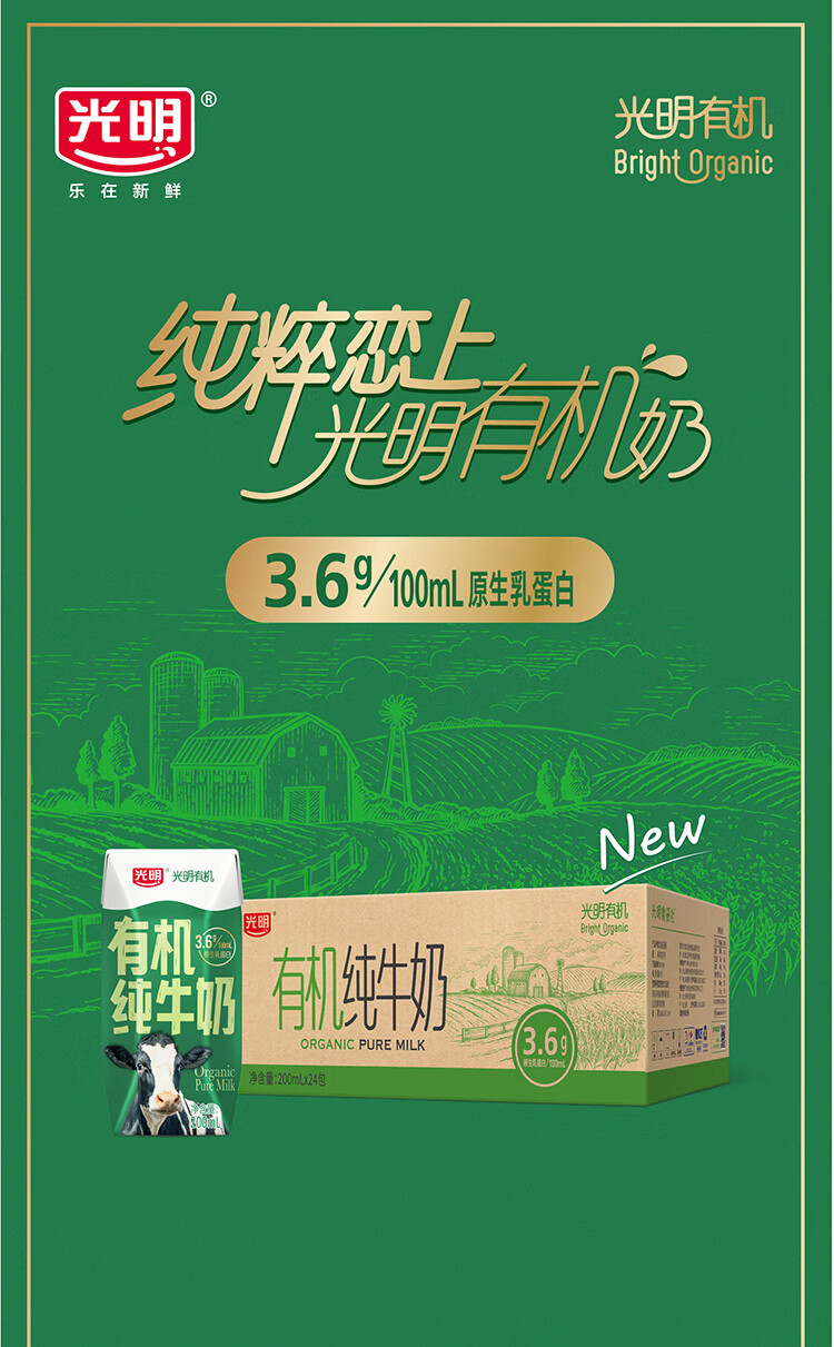 光明有机纯牛奶整箱纯牛奶年货送礼礼盒 有机纯牛奶200ml*20【11月产】
