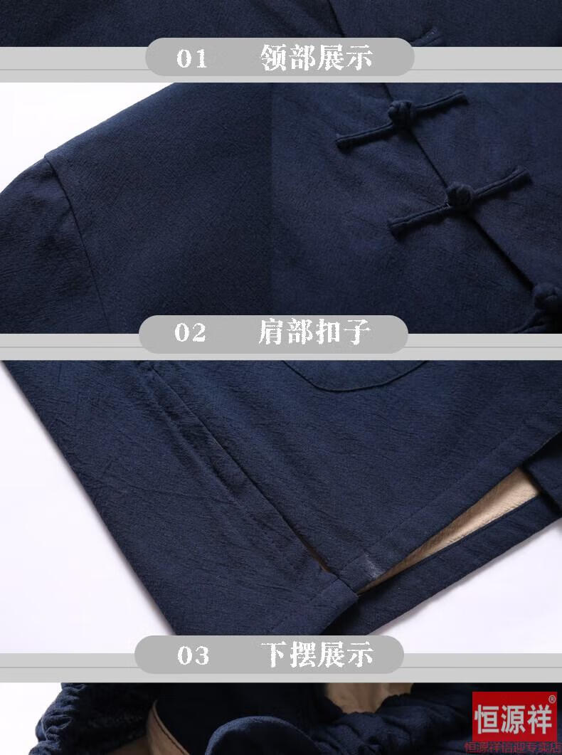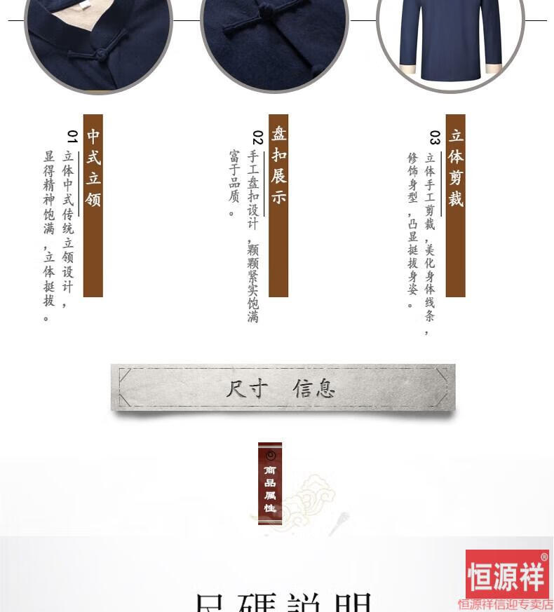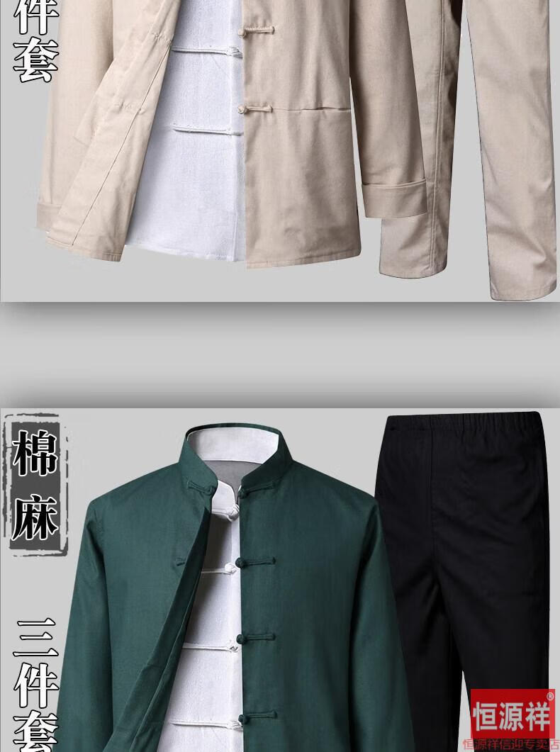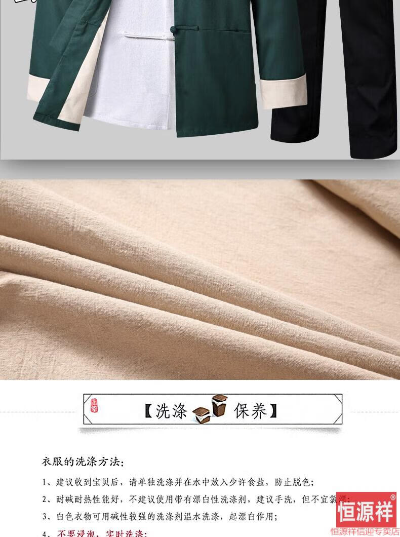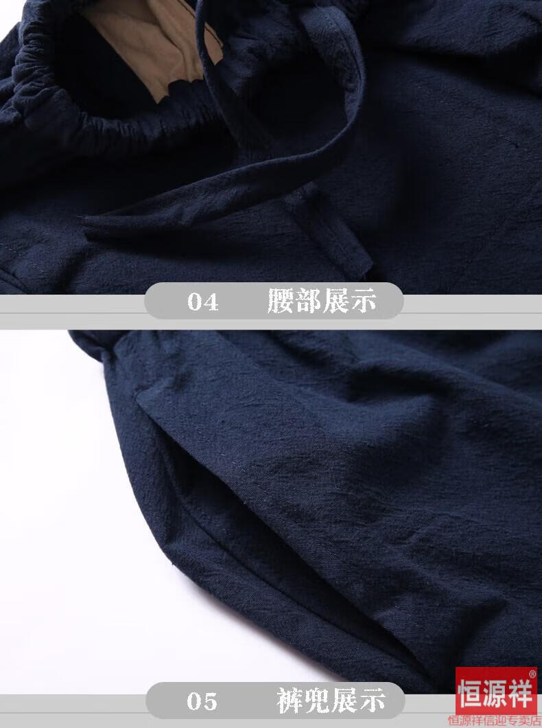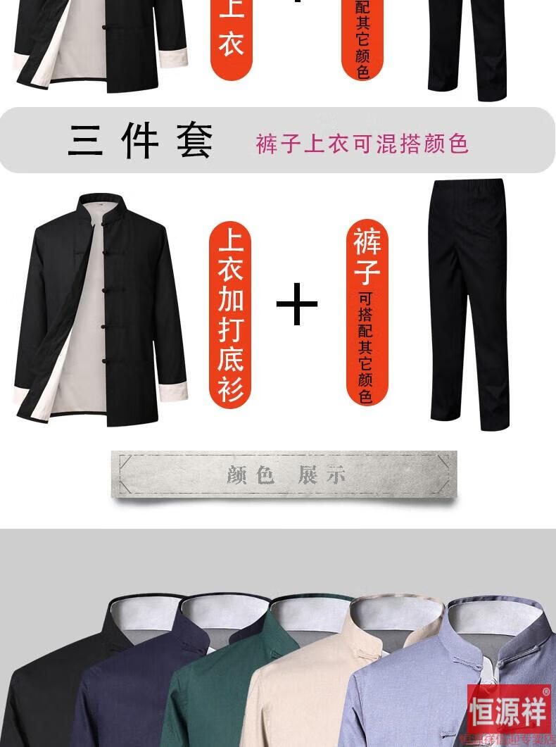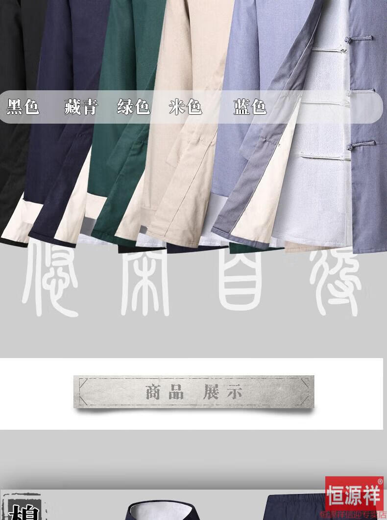 恒源祥品牌高档男装中式男士唐装套装长袖纯色亚麻宽松中山装中国风棉麻春秋款民族风 藏青色【二件套】 175