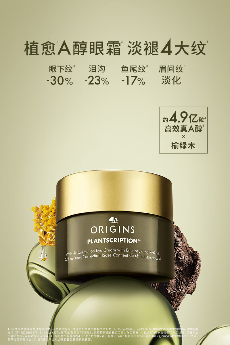 悦木之源(Origins)榆绿木A肽眼霜15ml抗皱紧致淡化黑眼圈细纹鱼尾纹新年礼物送女友