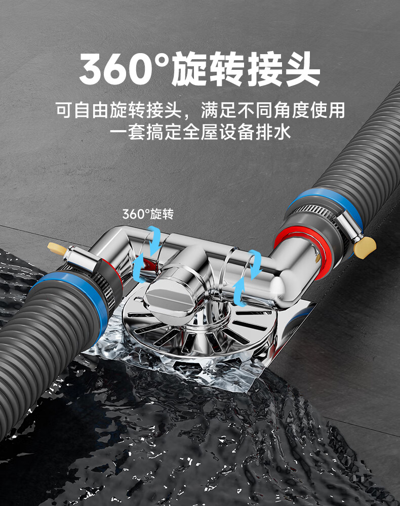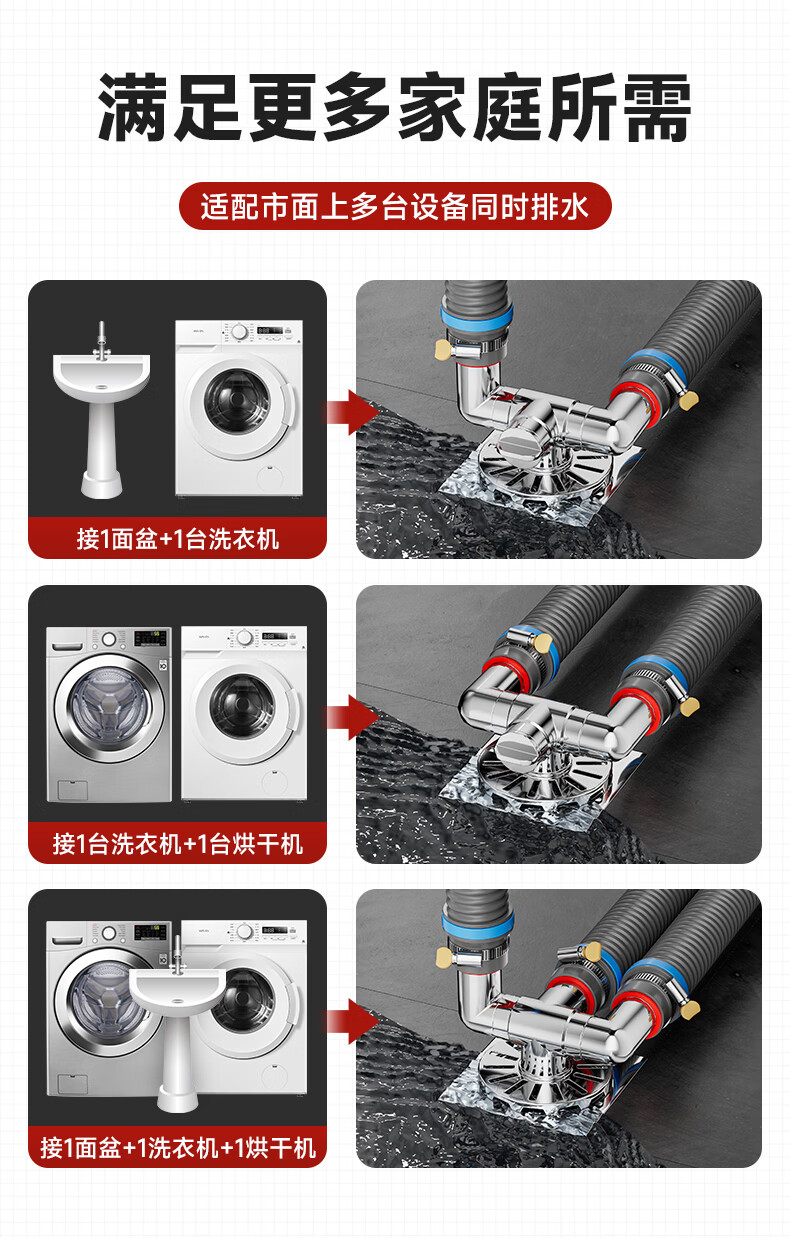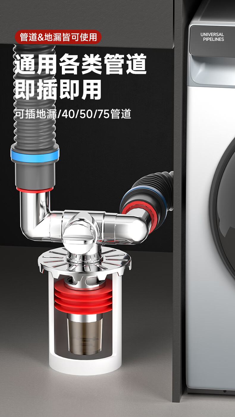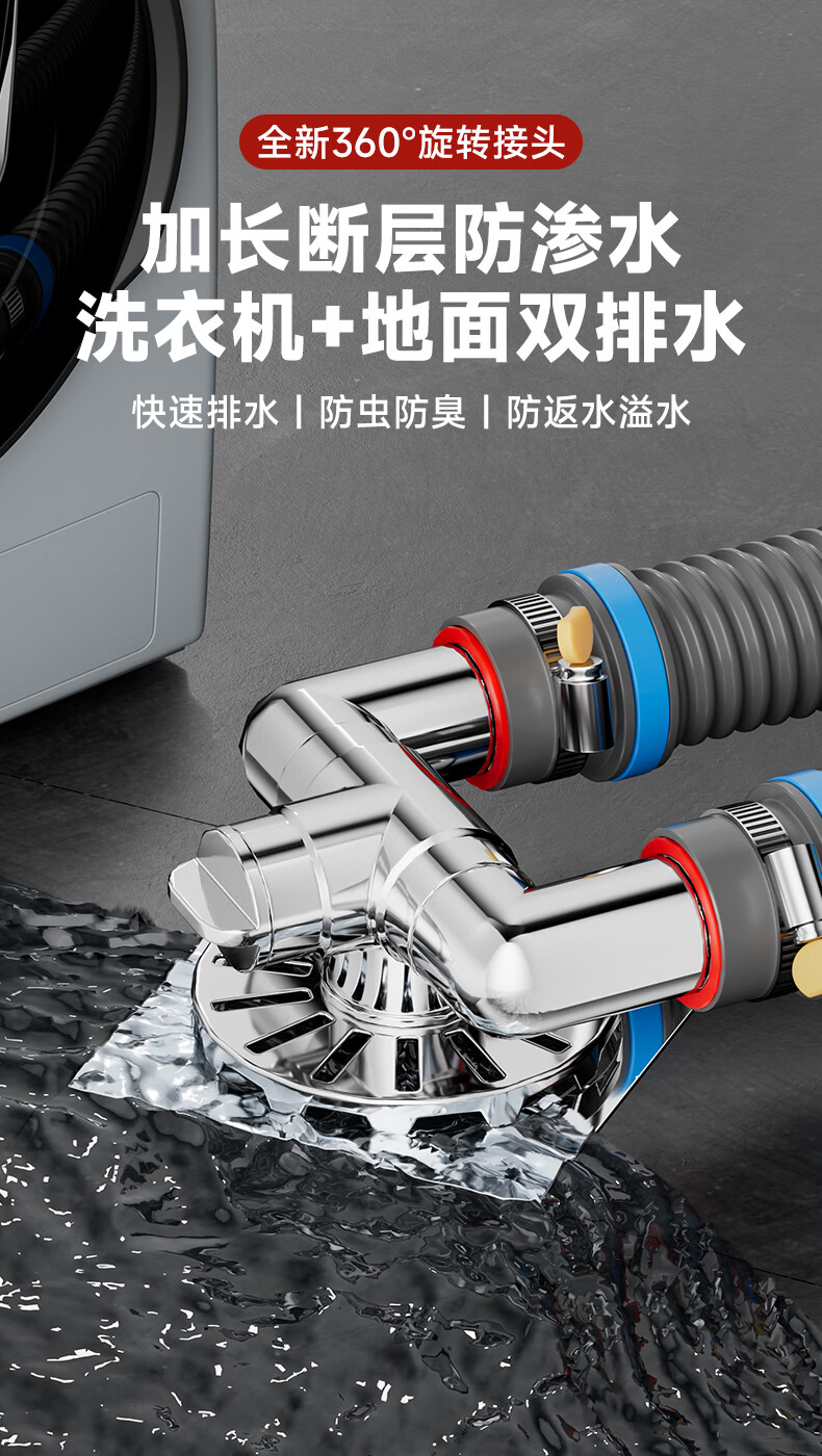 Jeonestan洗衣机地漏接头下水排水管三通专用防臭防虫防溢水阳台加长双排水 洗衣机下水三通【可地排】