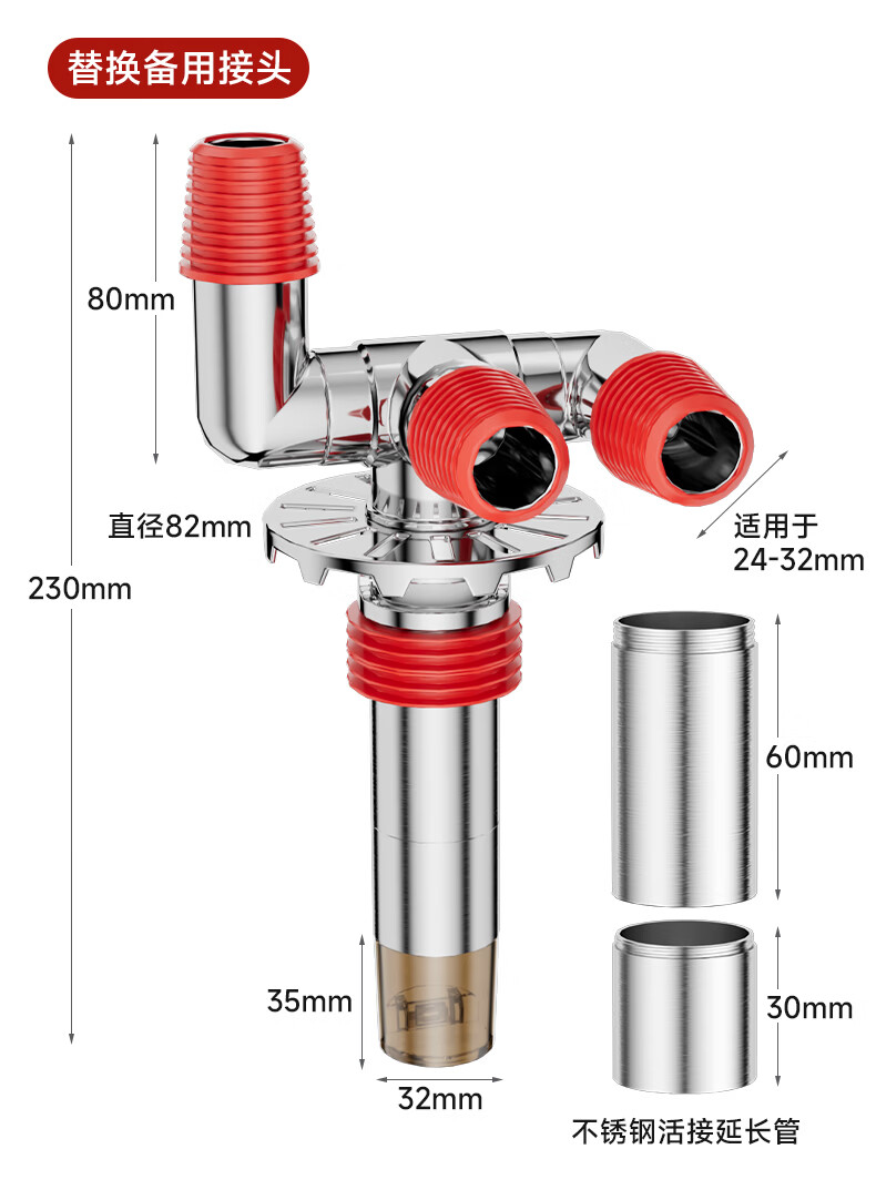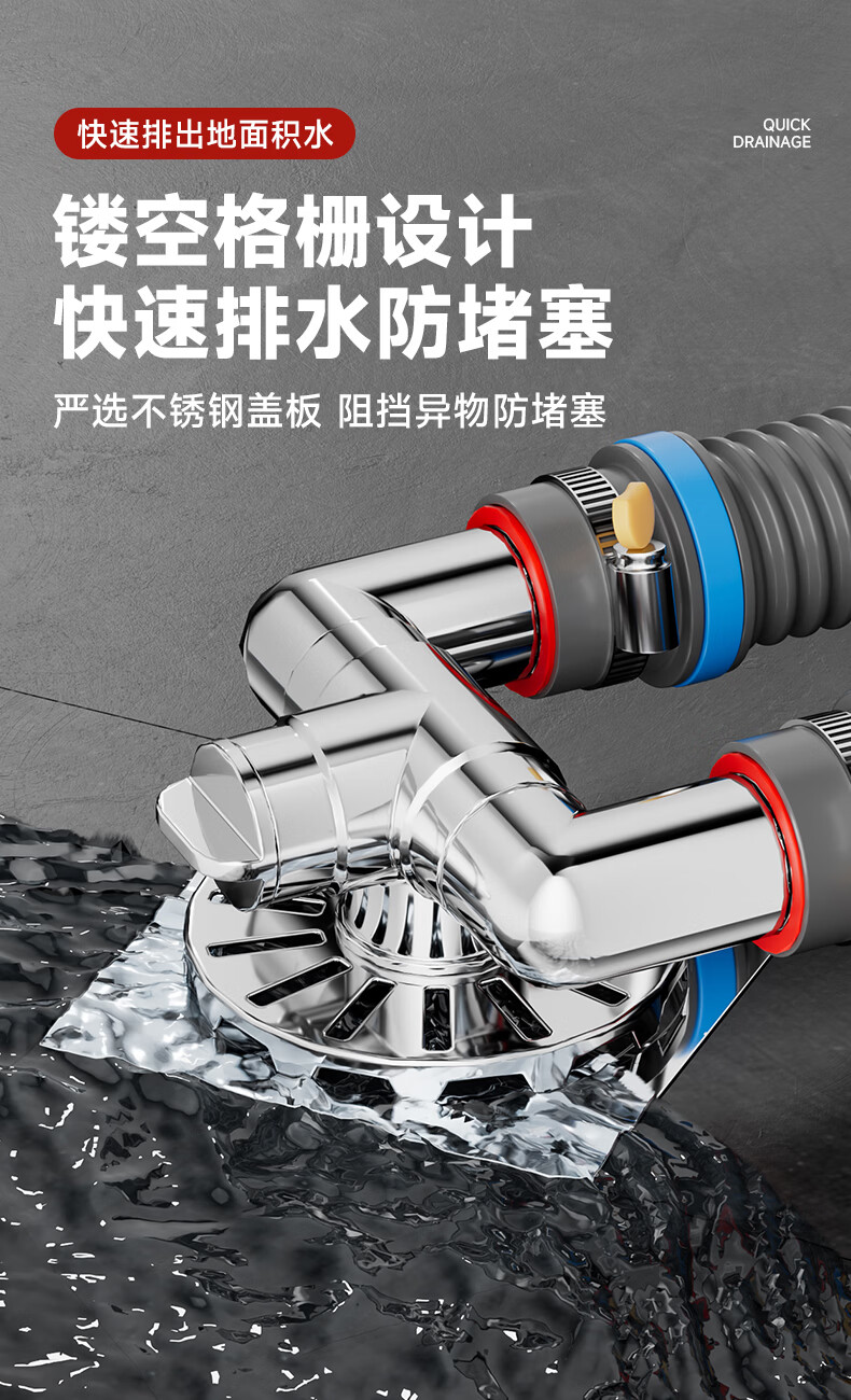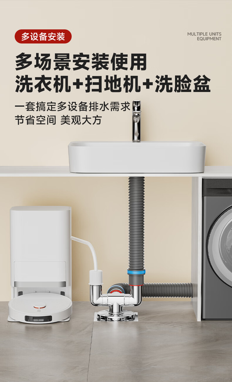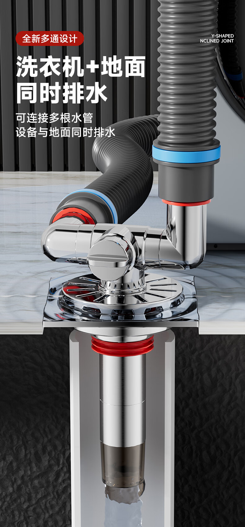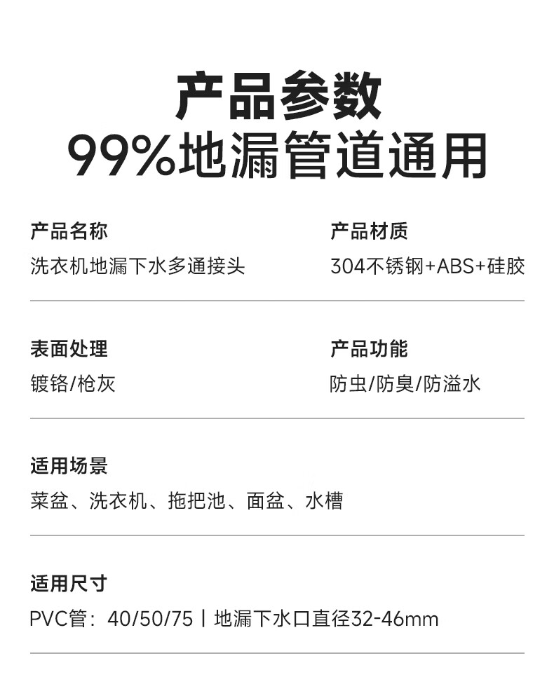 Jeonestan洗衣机地漏接头下水排水管三通专用防臭防虫防溢水阳台加长双排水 洗衣机下水三通【可地排】