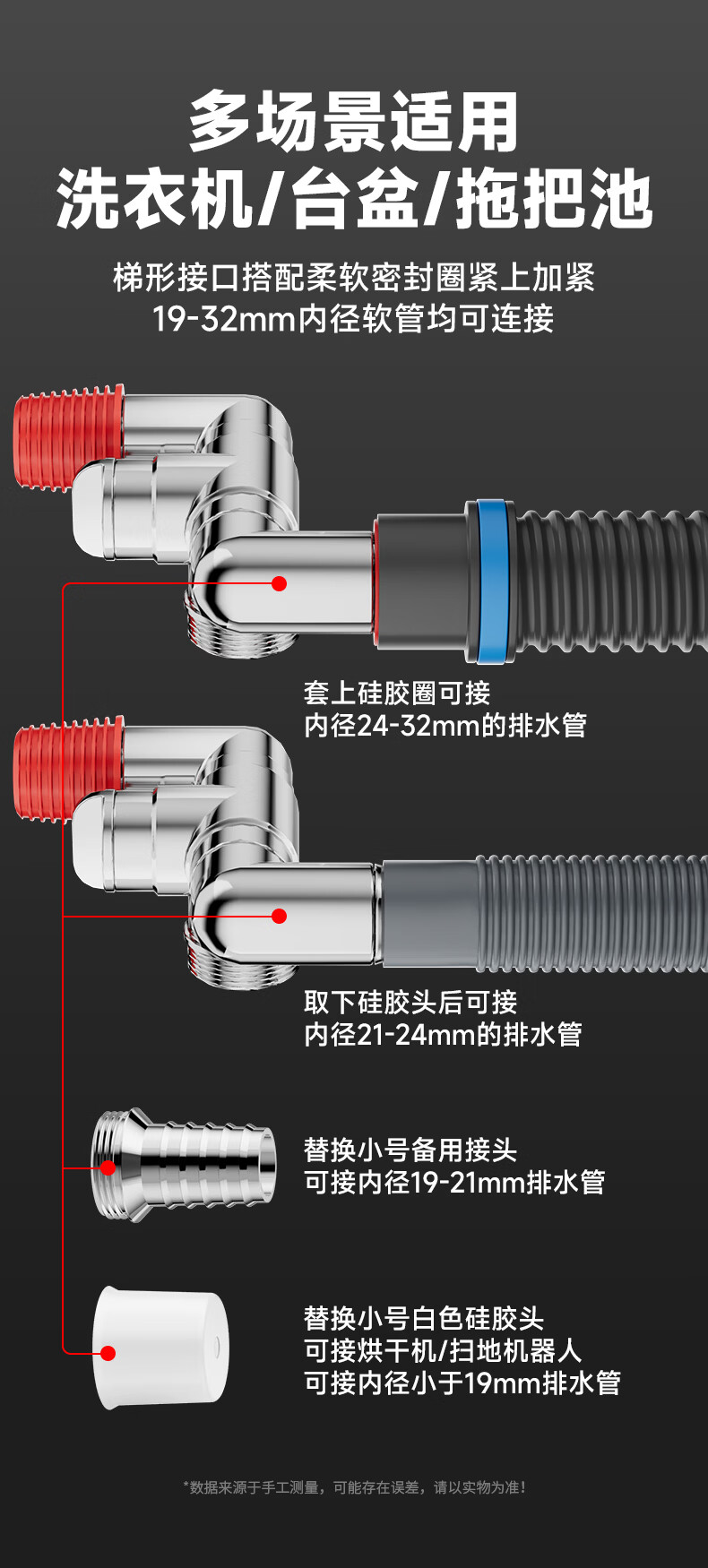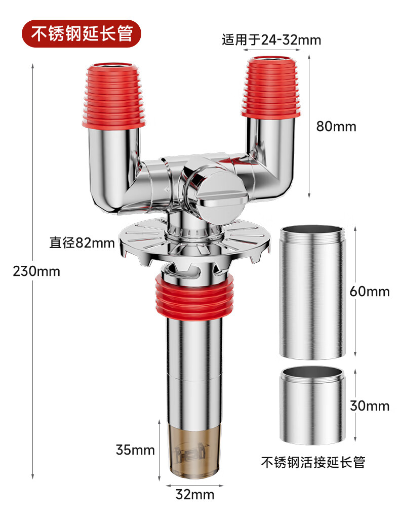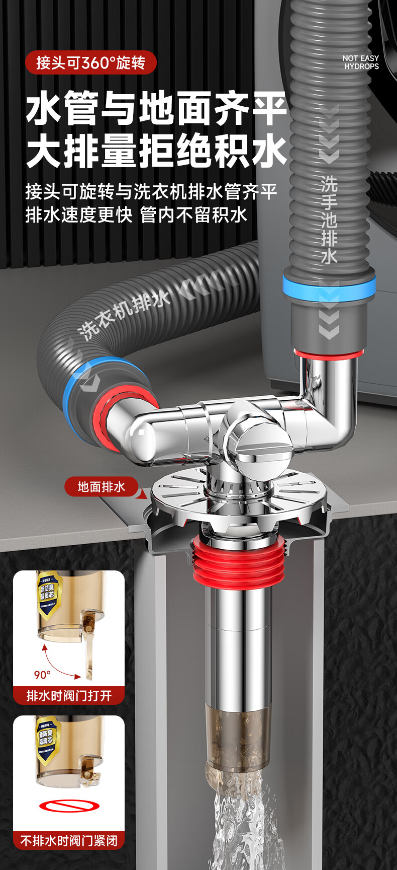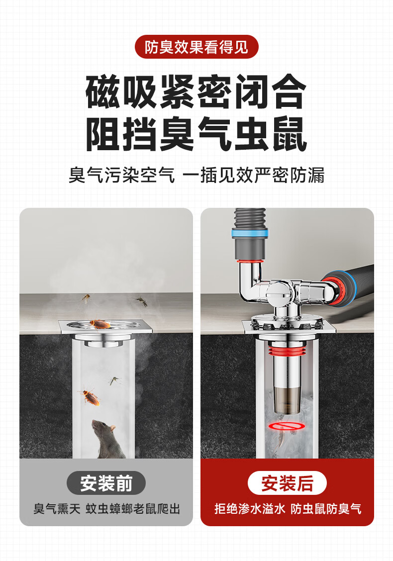 Jeonestan洗衣机地漏接头下水排水管三通专用防臭防虫防溢水阳台加长双排水 洗衣机下水三通【可地排】