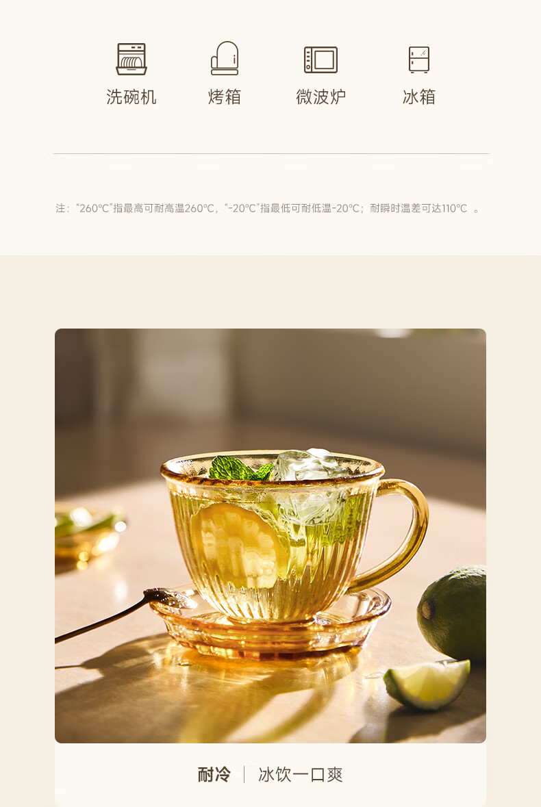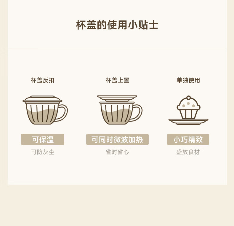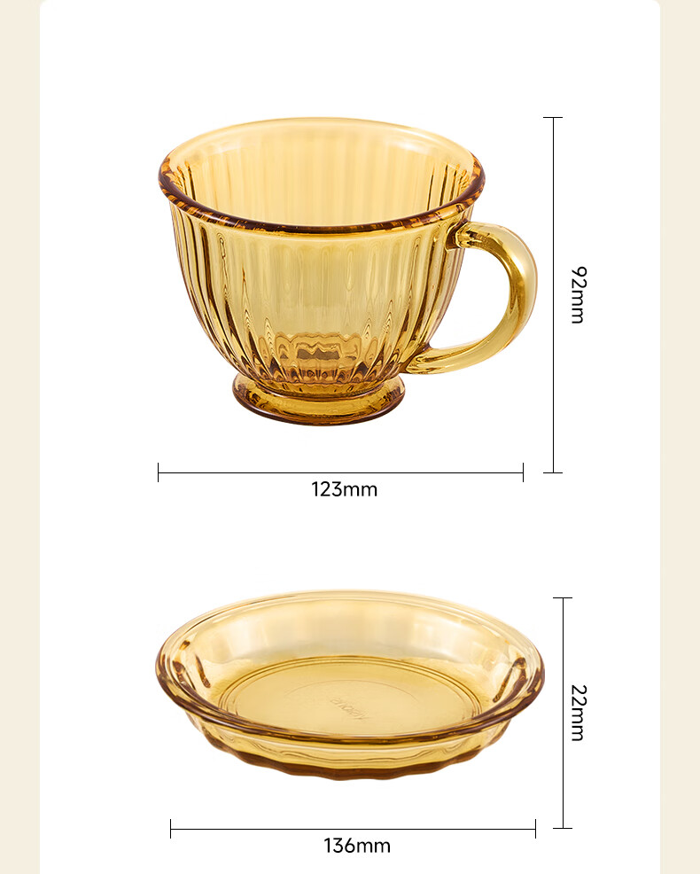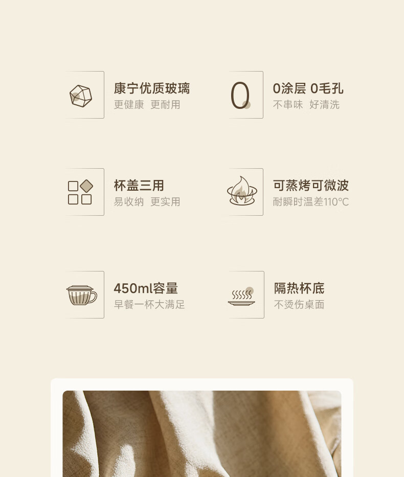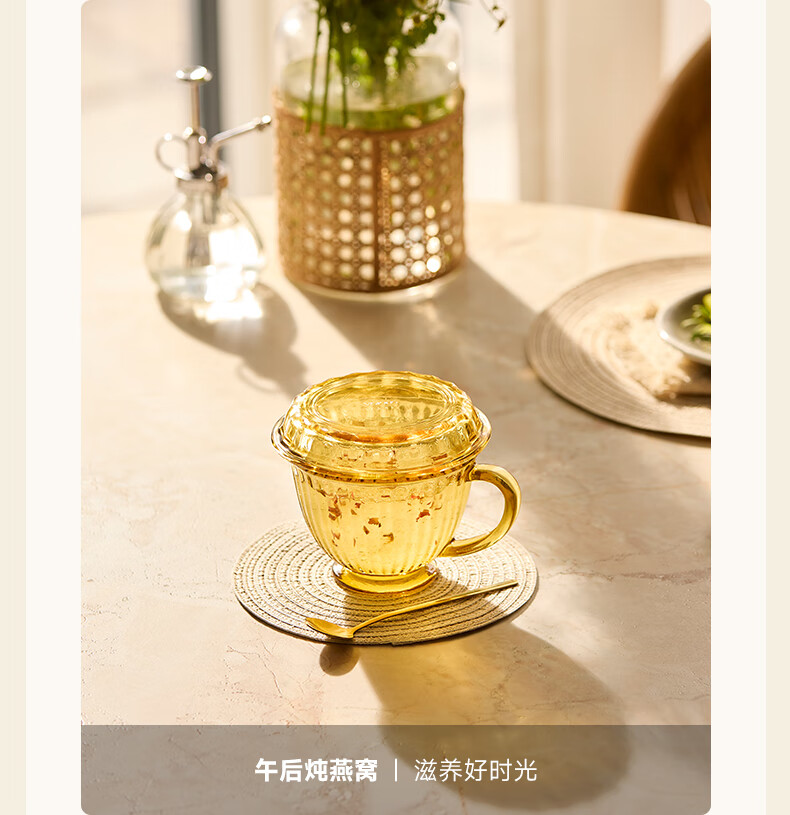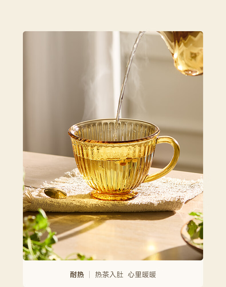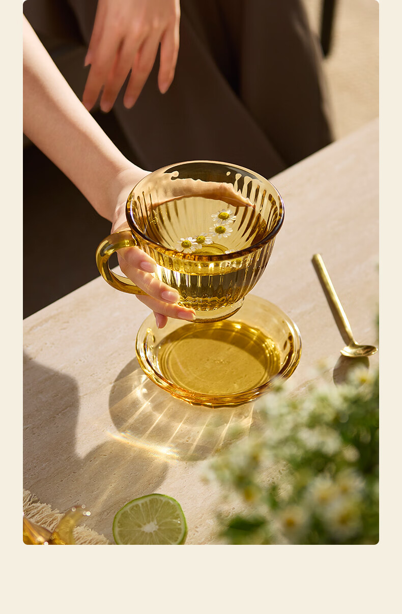 康宁(VISIONS)琥珀色早餐杯玻璃杯燕麦牛奶杯家用带盖勺子咖啡杯2杯2盖2勺
