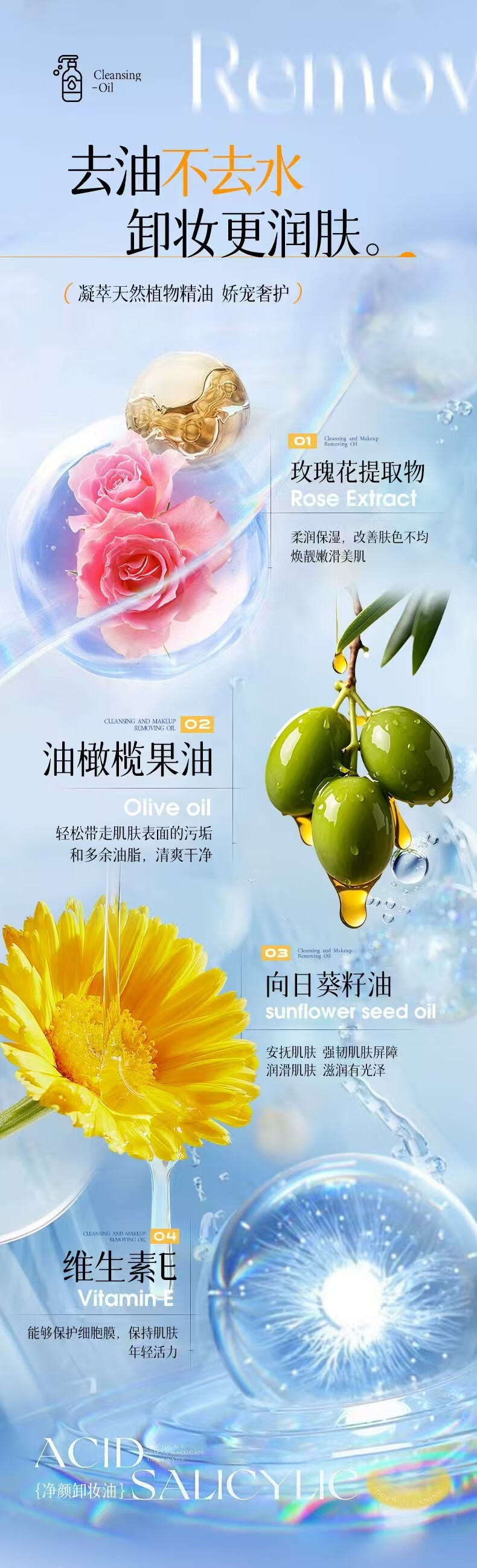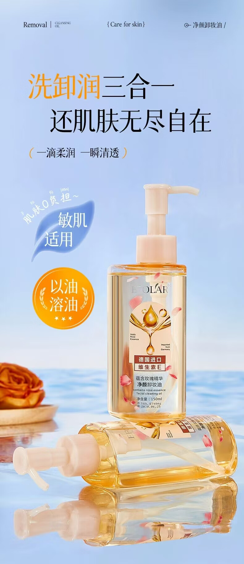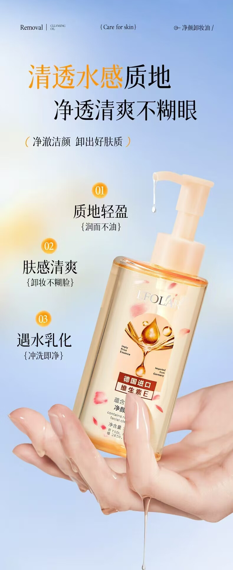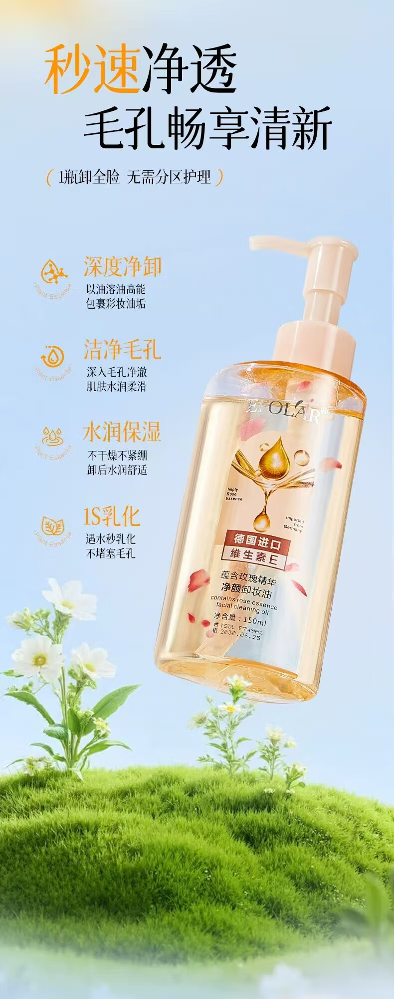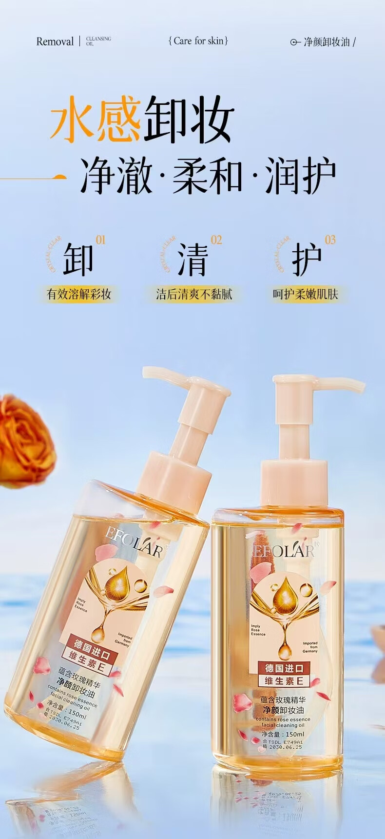EFOLAR品牌 维生素E净颜卸妆油养肤卸妆一体温和深层清洁面三合去黑头 净颜卸妆油150ml