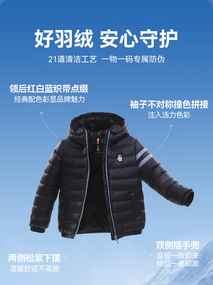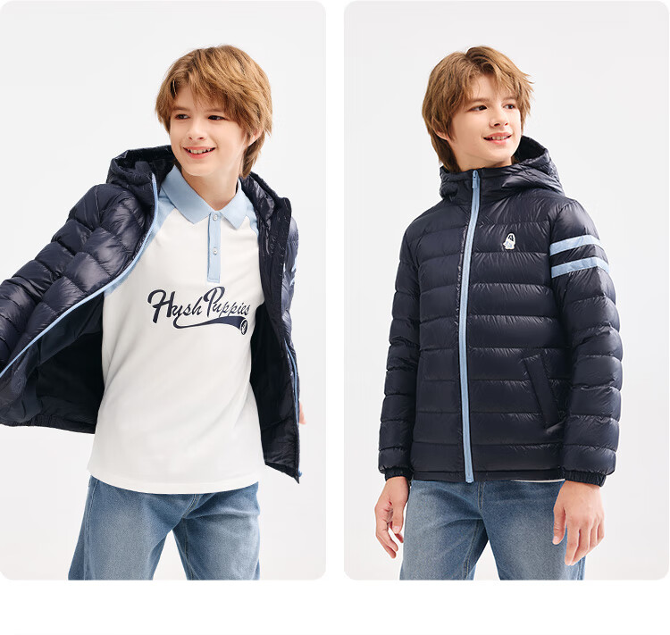 暇步士(Hush Puppies)【防风】童装儿童男女童2025冬季新款保暖舒适时尚百搭羽绒服 藏蓝 160 cm
