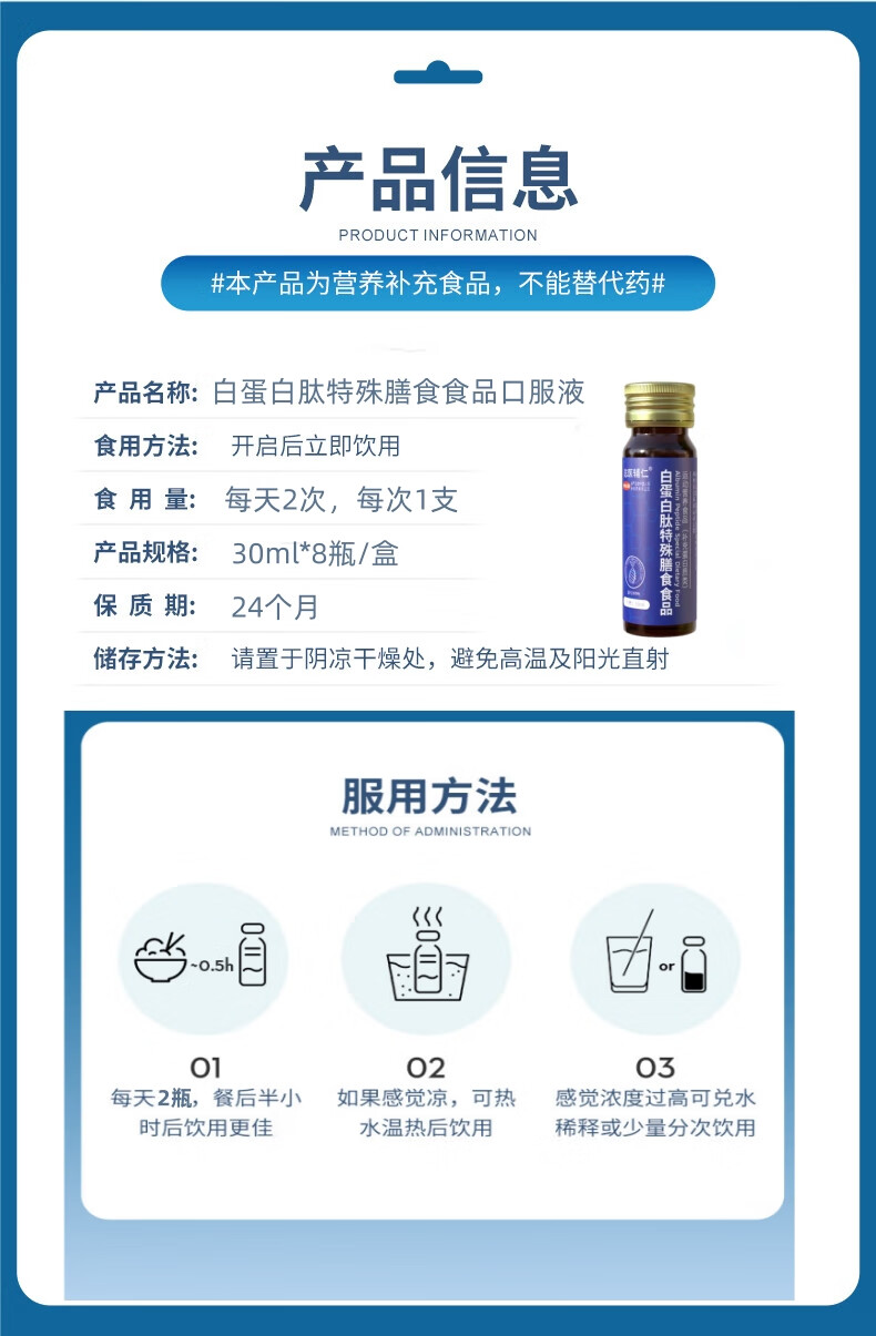 志医辅仁白蛋白肽口服液特殊膳食食品原液搭小分子肽儿童中老年术后补品 3盒装