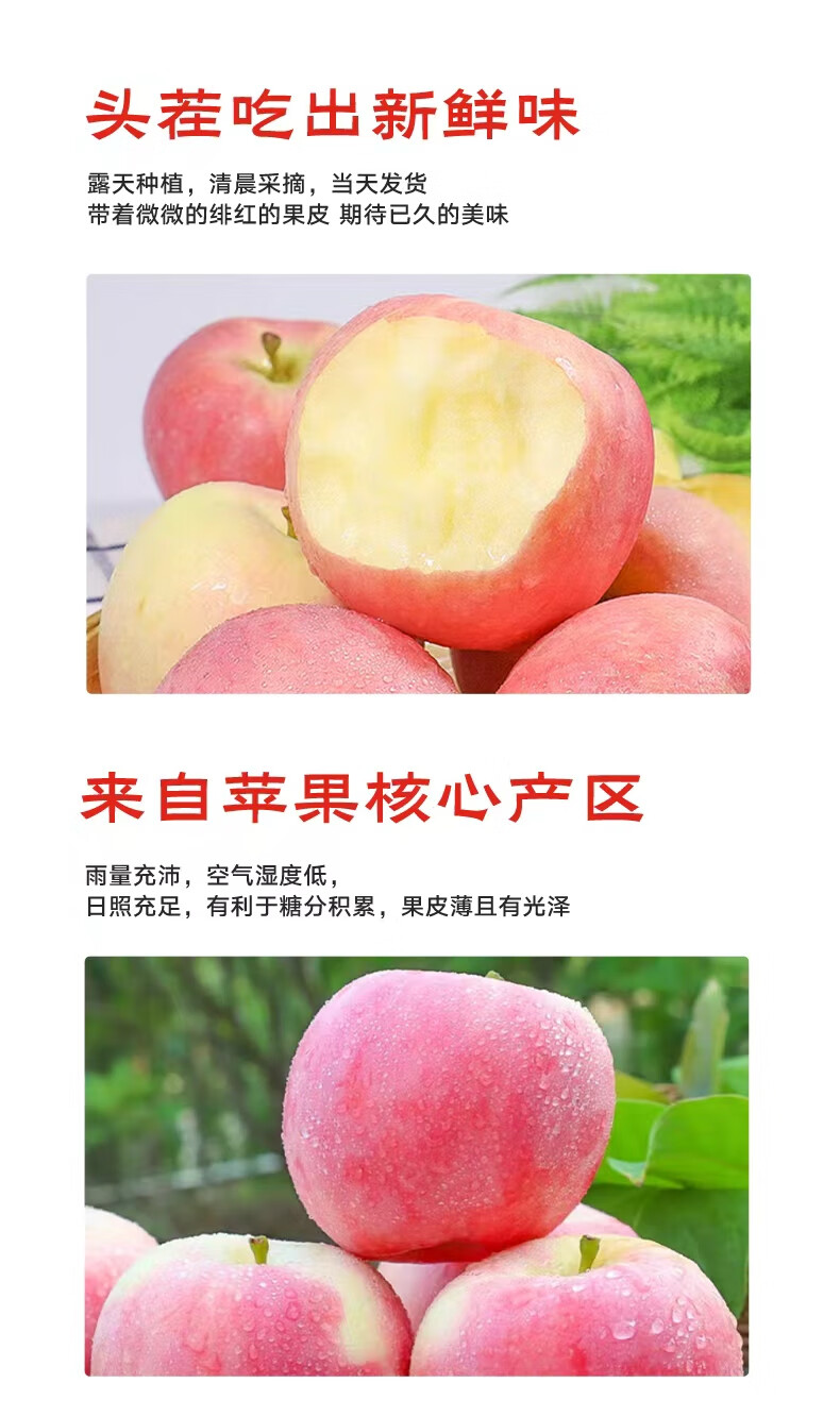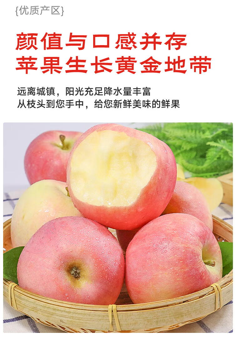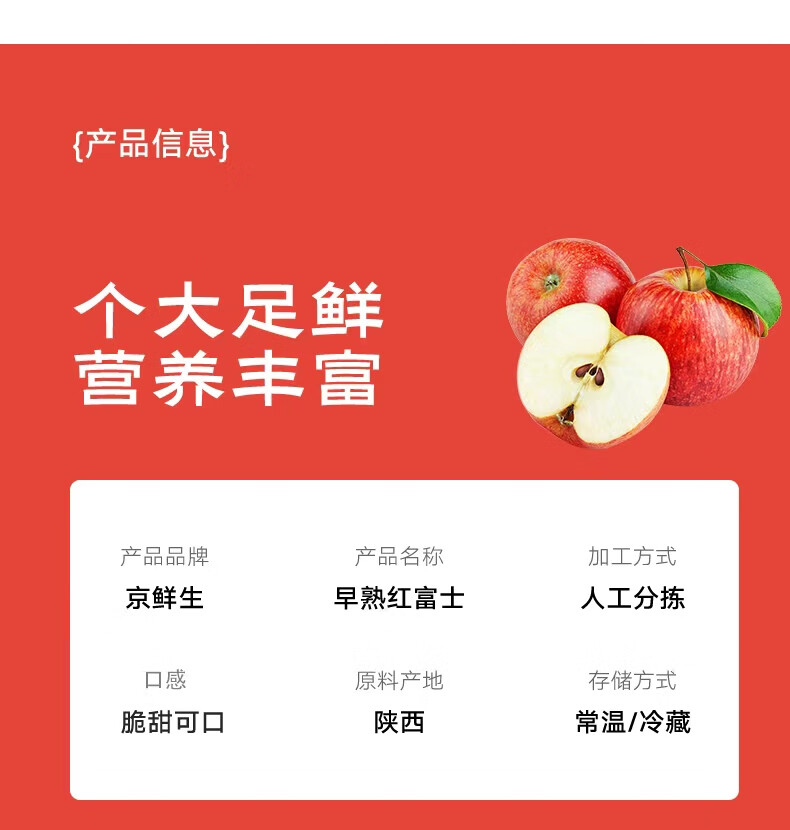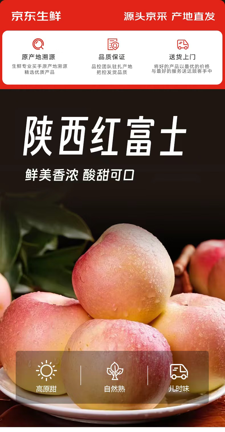 京鲜生 陕西红富士苹果 净重3斤 单果70mm+ 新鲜水果 源头直发