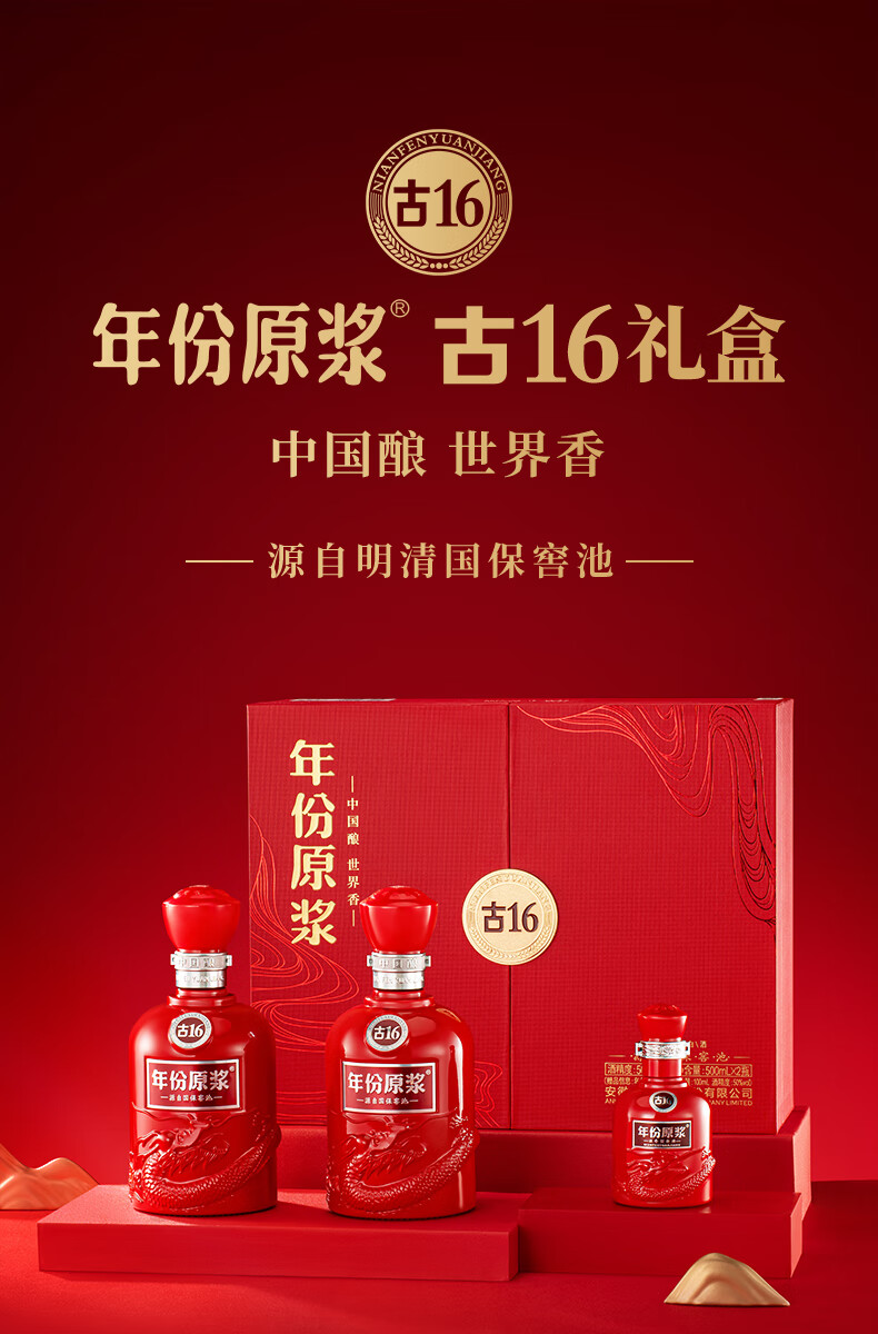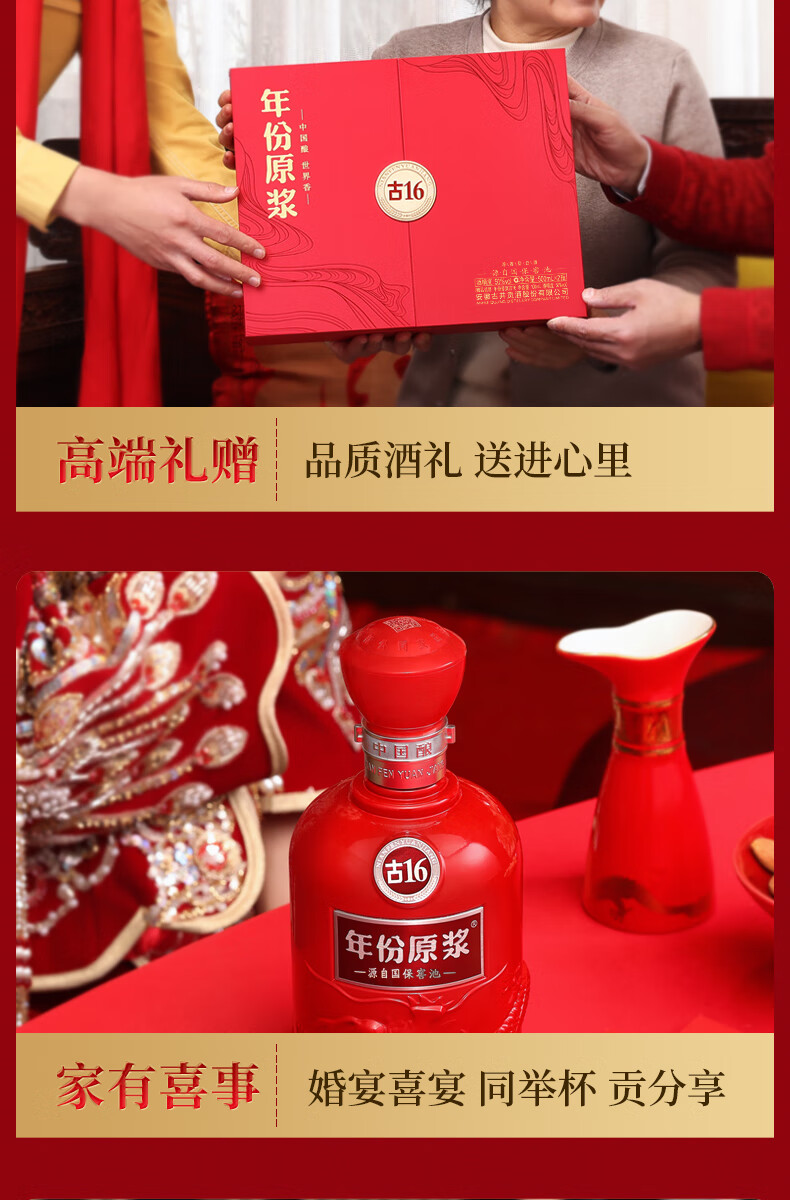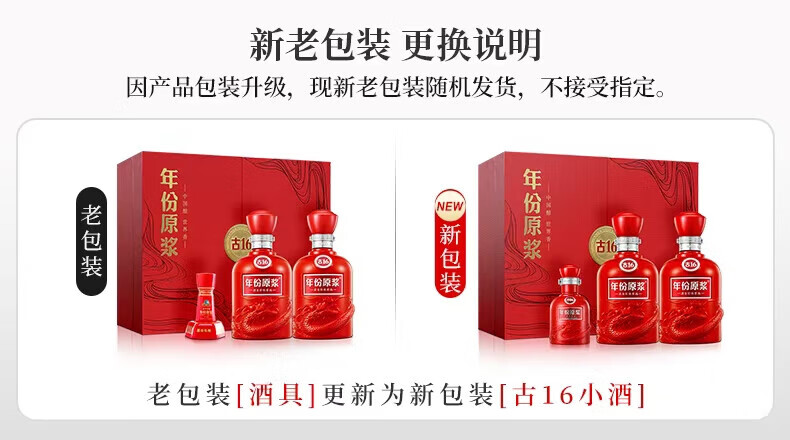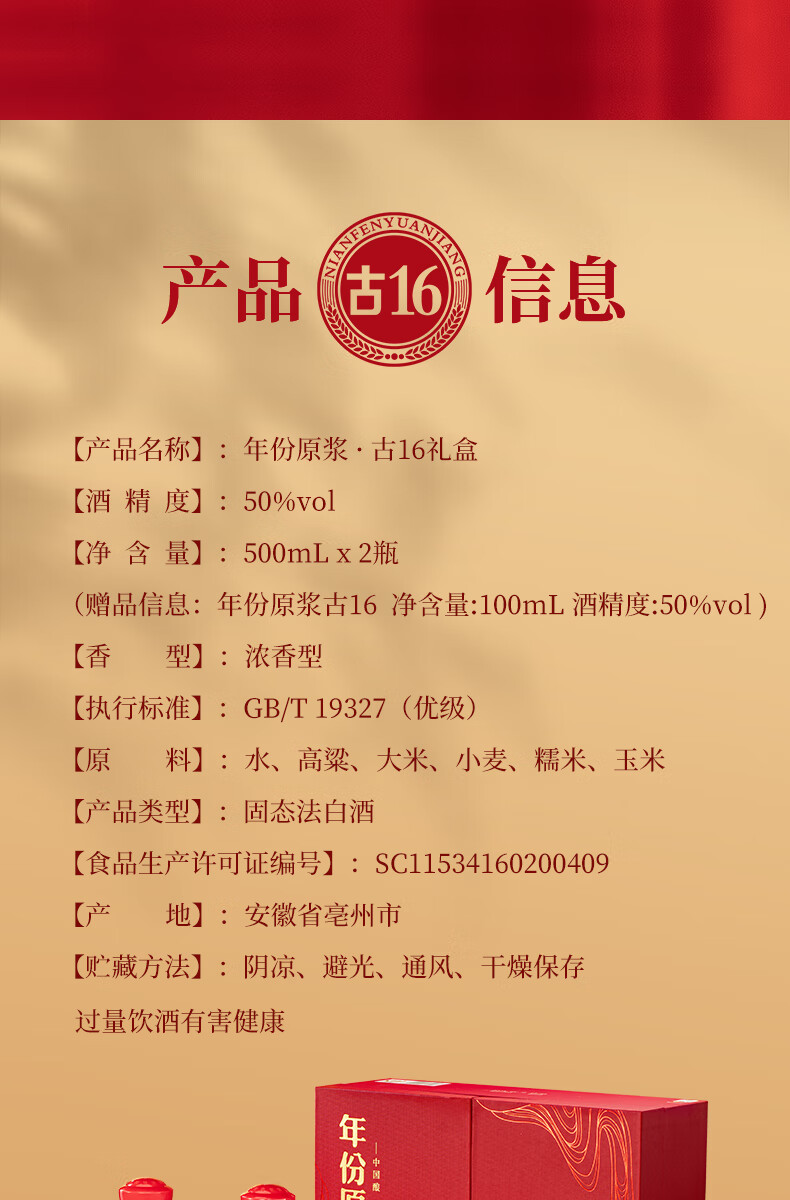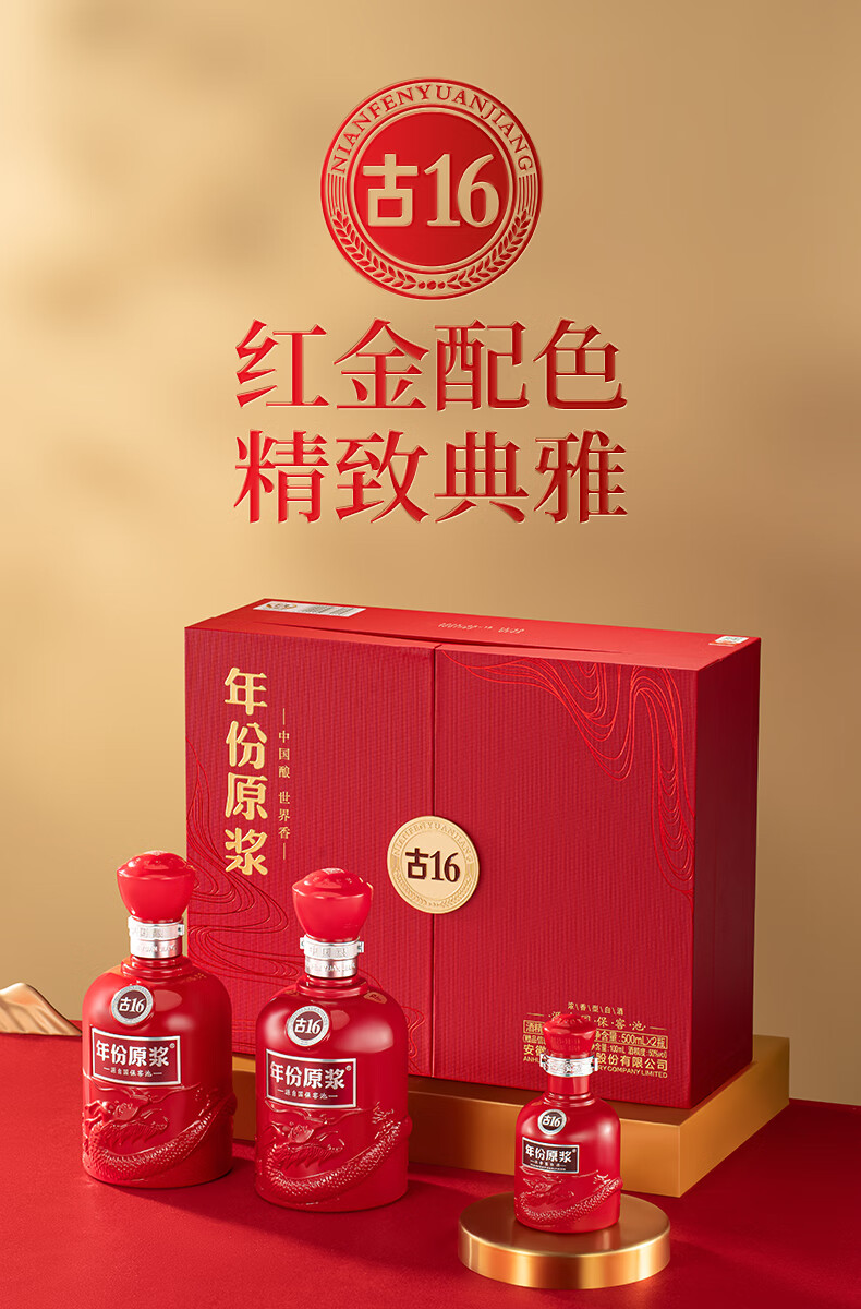 古井贡酒 年份原浆古16礼盒 浓香型白酒送礼 50度 500mL 2瓶 新老版本随机