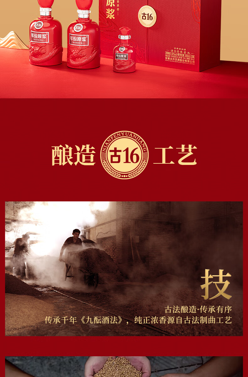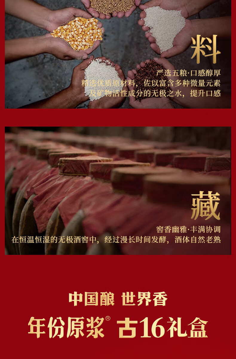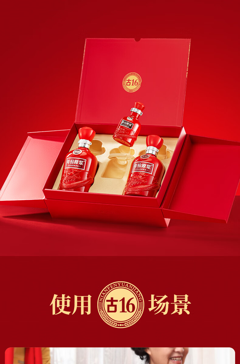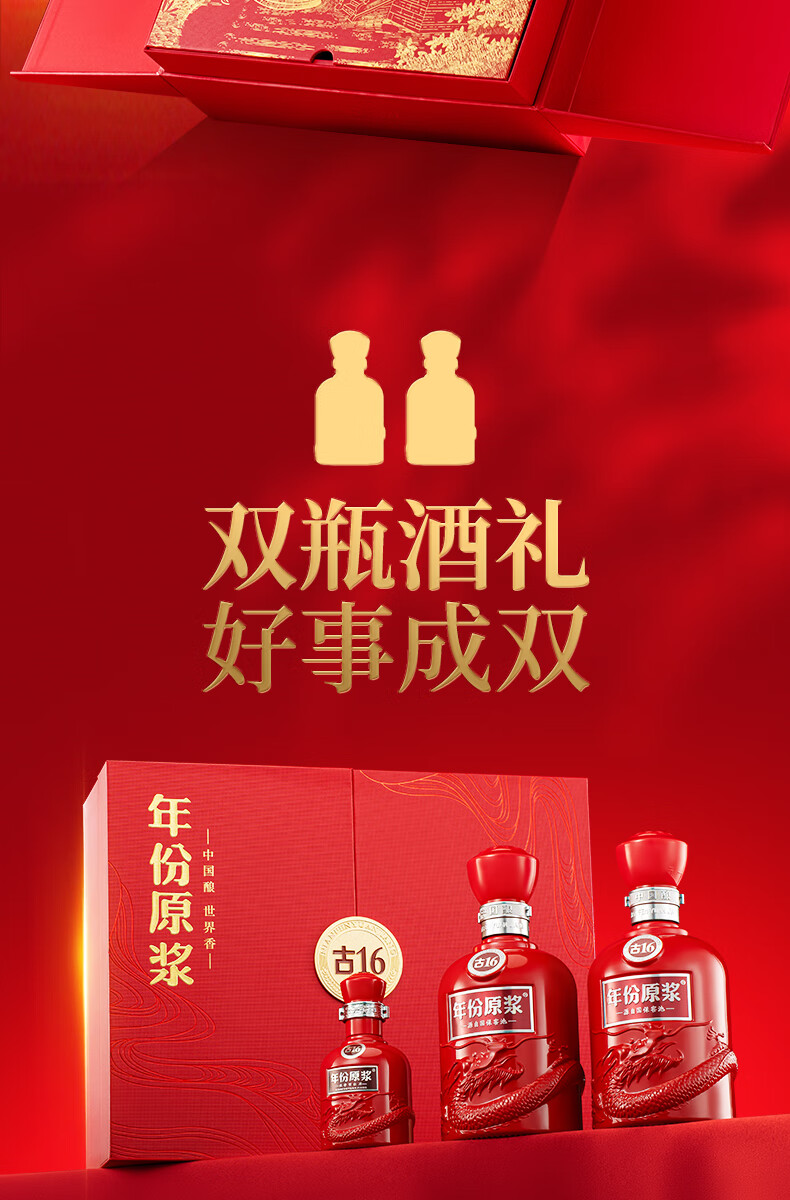 古井贡酒 年份原浆古16礼盒 浓香型白酒送礼 50度 500mL 2瓶 新老版本随机