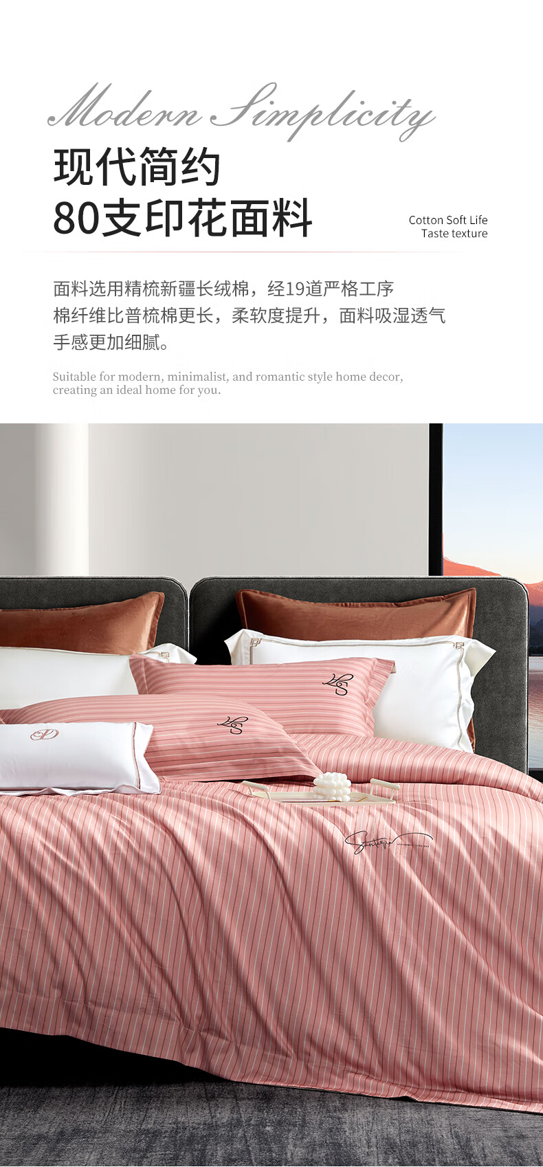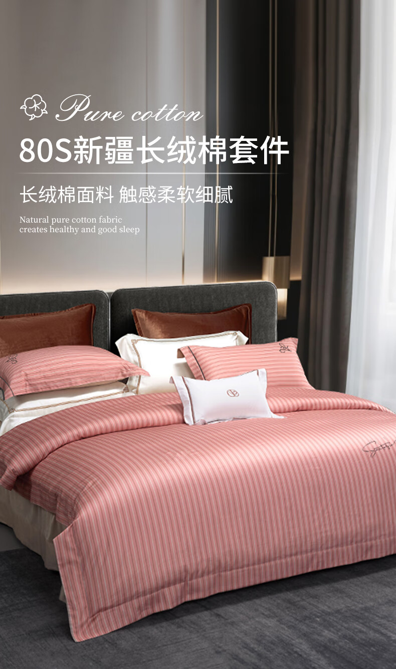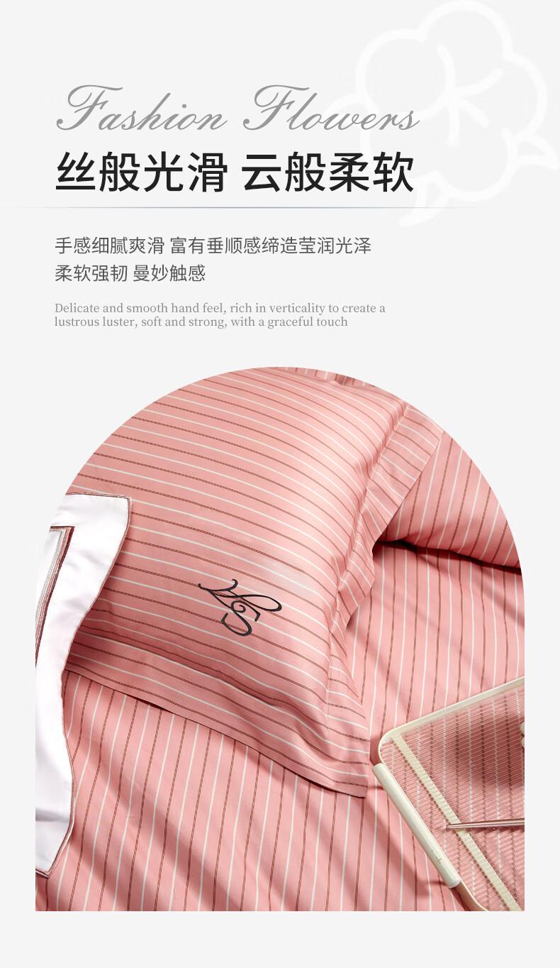 黛富妮四件套100%纯棉80支阿瓦提新疆长绒棉全棉条纹被套床单双人套件 阿瓦提长绒棉- 80支 -塞伦娜四件套 1.5米 床单款 (被套200*230cm)
